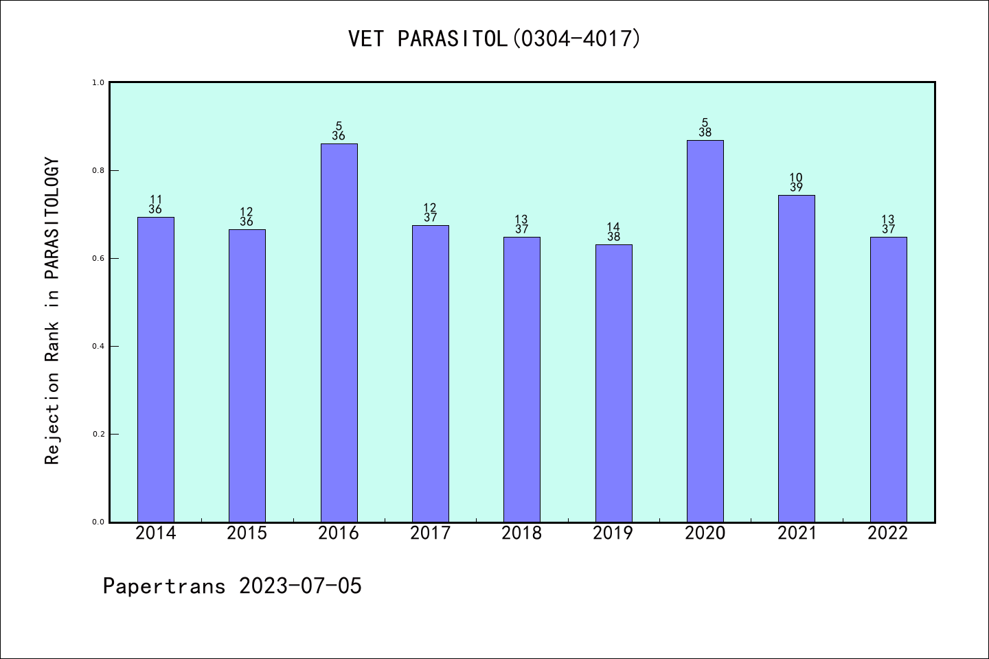 SCIE期刊VETERINARY PARASITOLOGY历年拒稿占比