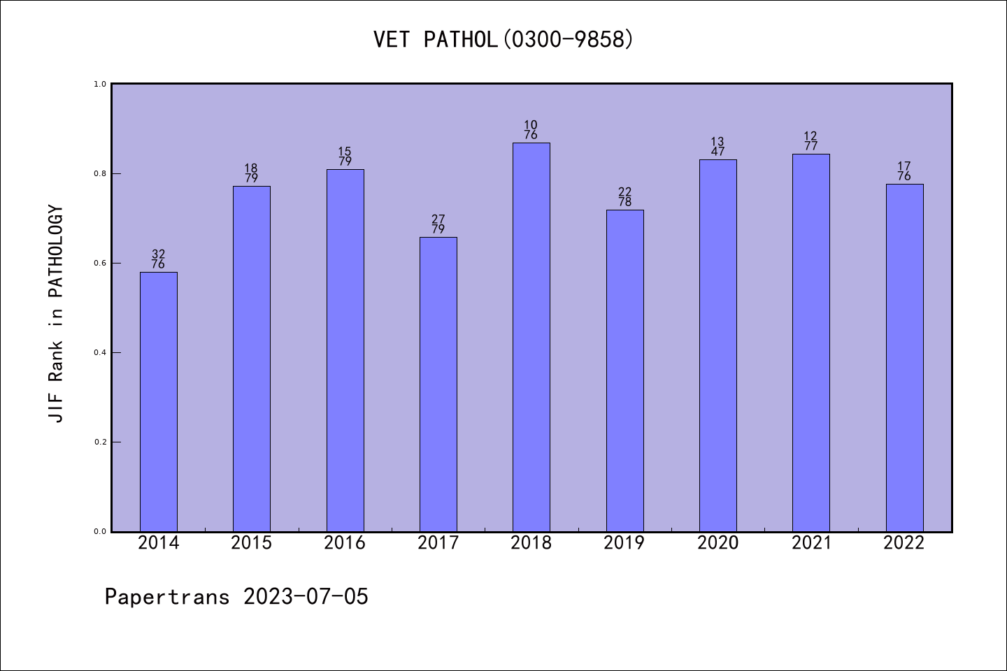 VETERINARY PATHOLOGY拒稿率学科排名@SCIE病理学