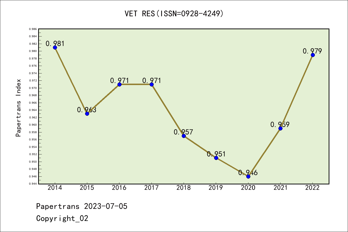 SCIE期刊VETERINARY RESEARCH历年派博系数(Pindex)