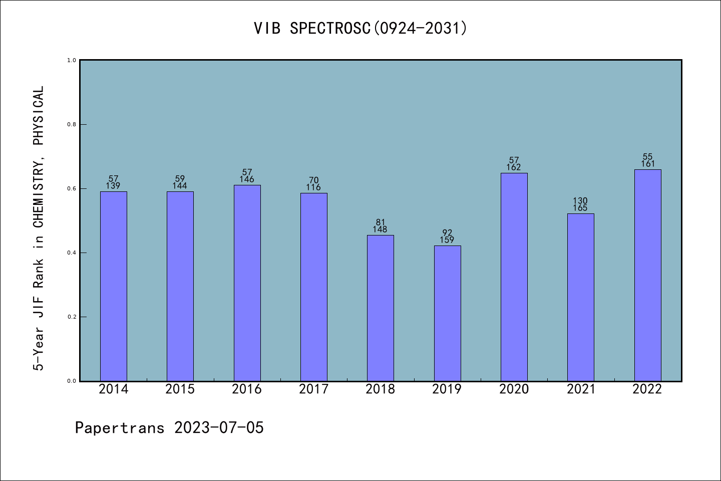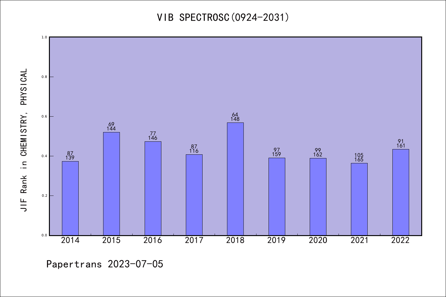 VIBRATIONAL SPECTROSCOPY派博系数(Pindex)学科排名@SCIE物理化学