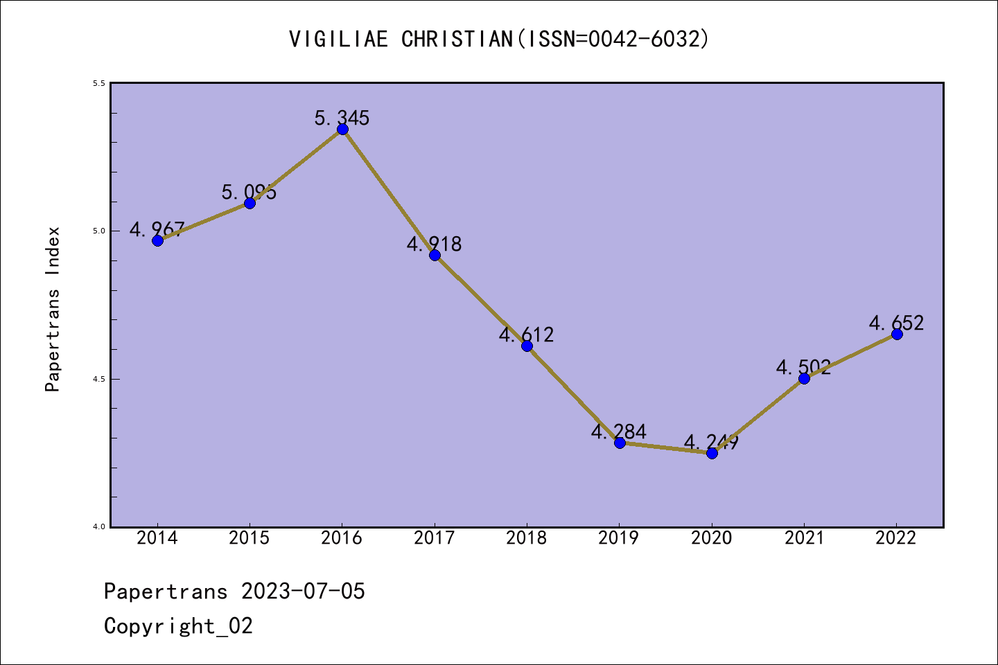 AHCI期刊VIGILIAE CHRISTIANAE历年派博系数(Pindex)