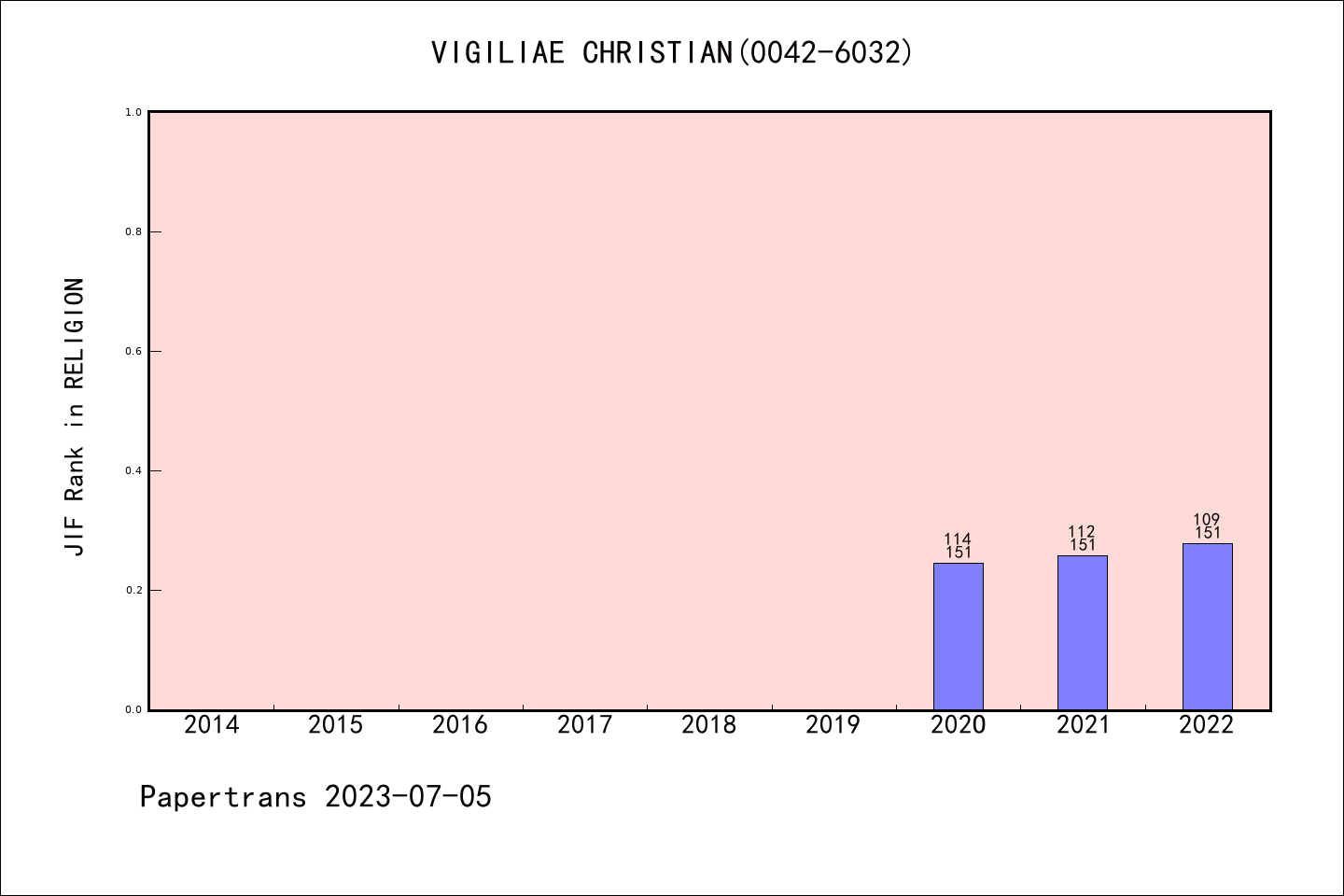 VIGILIAE CHRISTIANAE派博系数(Pindex)学科排名@AHCI宗教