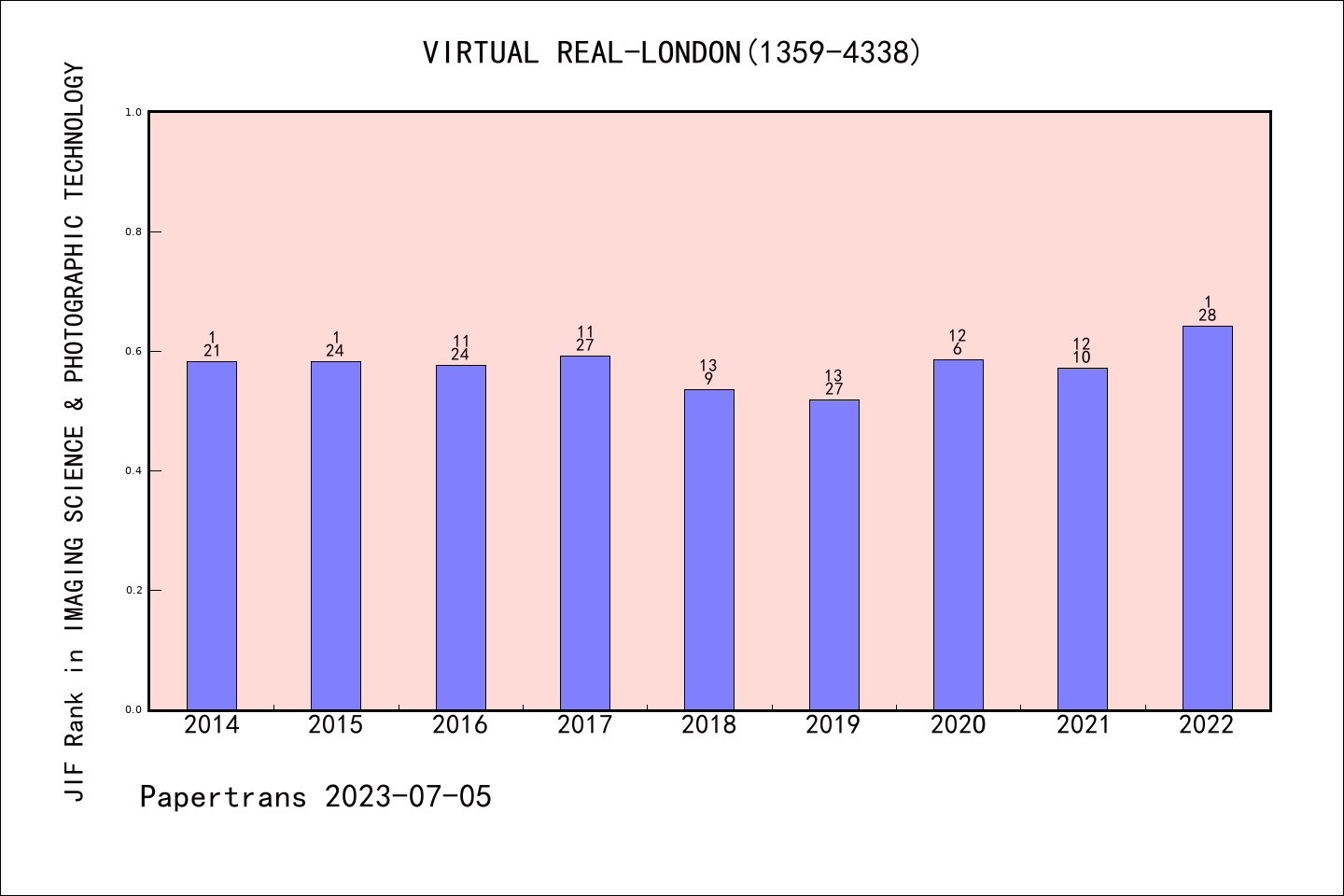 VIRTUAL REALITY派博系数(Pindex)学科排名@SCIE影像科学与摄影技术