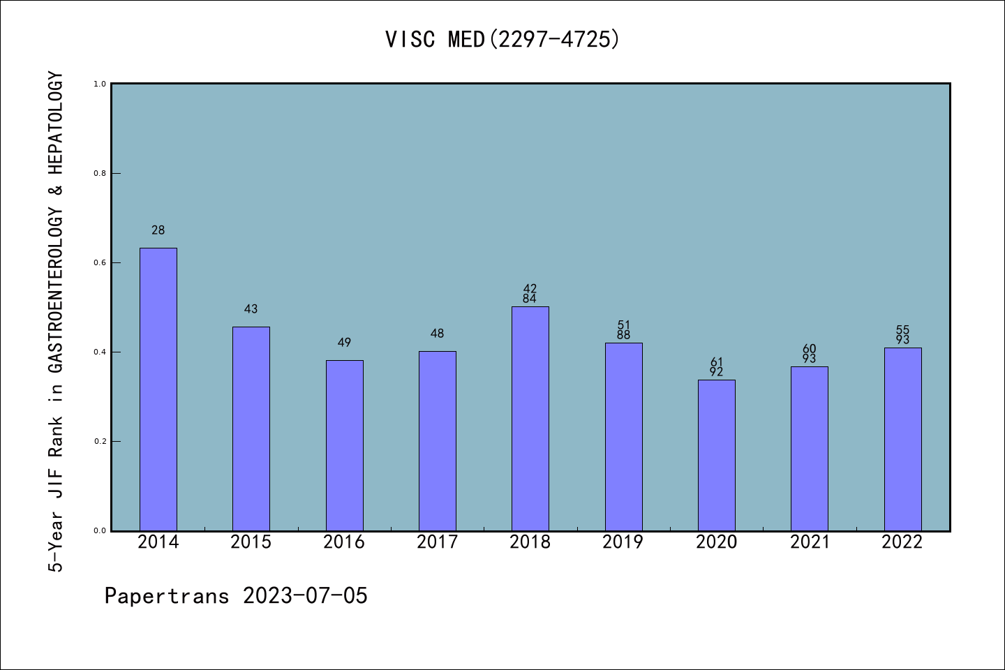 Visceral Medicine拒稿率学科排名@SCIE胃肠病与肝病