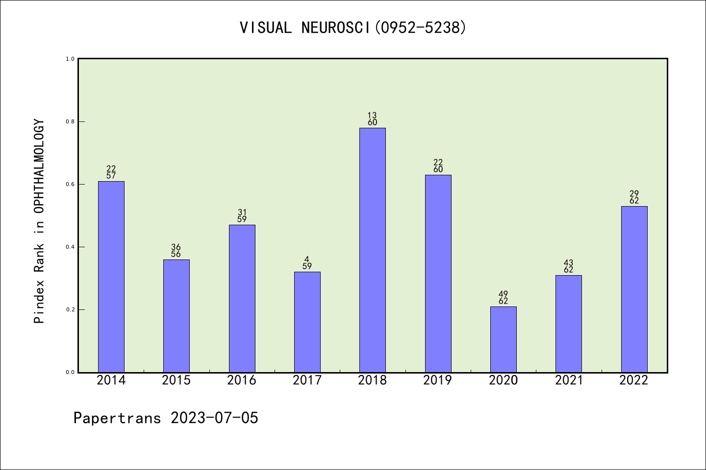 VISUAL NEUROSCIENCE派博系数(Pindex)学科排名@SCIE眼科学
