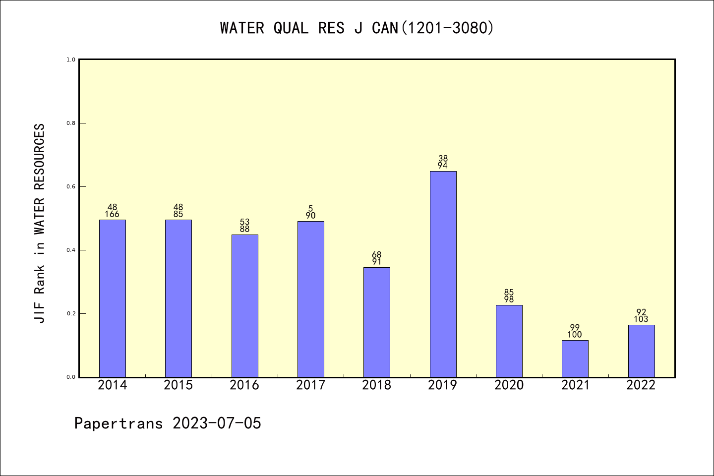 WATER QUAL RES J CAN图表质量排名@SCIE水资源