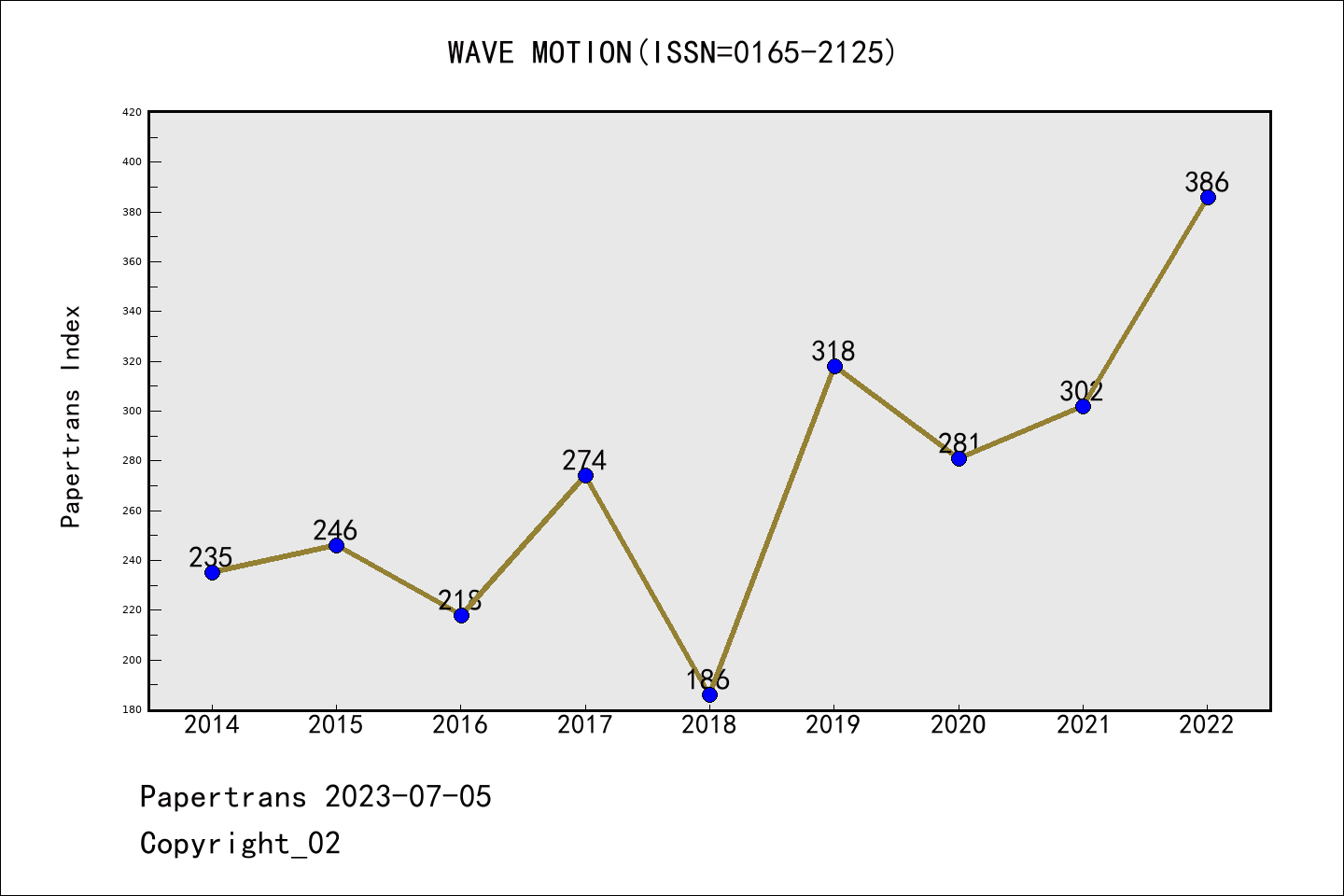 SCIE期刊WAVE MOTION历年派博系数(Pindex)