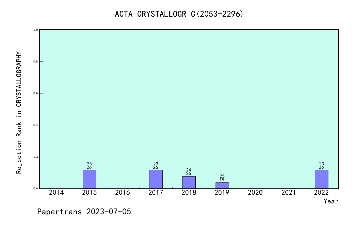 ACTA CRYSTALLOGRAPHICA SECTION C-STRUCTURAL CHEMISTRY拒稿率学科排名@SCIE晶体学