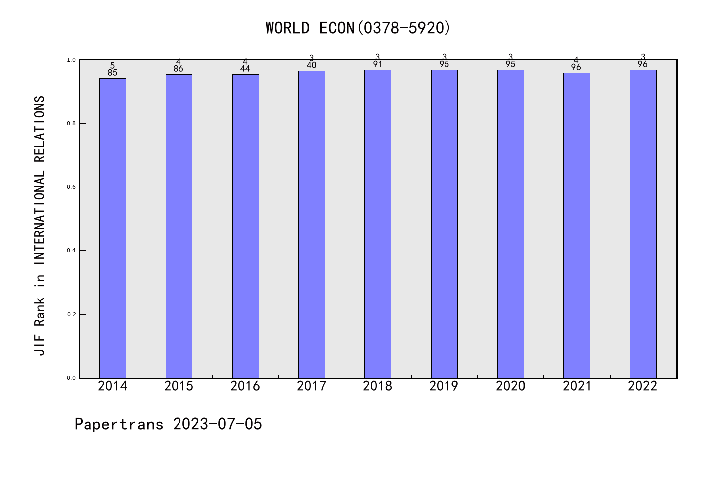WORLD ECONOMY派博系数(Pindex)学科排名@SSCI国际关系