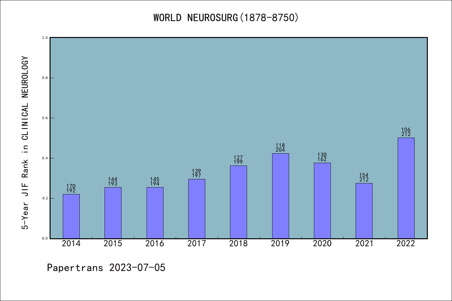 WORLD NEUROSURG图表质量排名@SCIE临床神经病学
