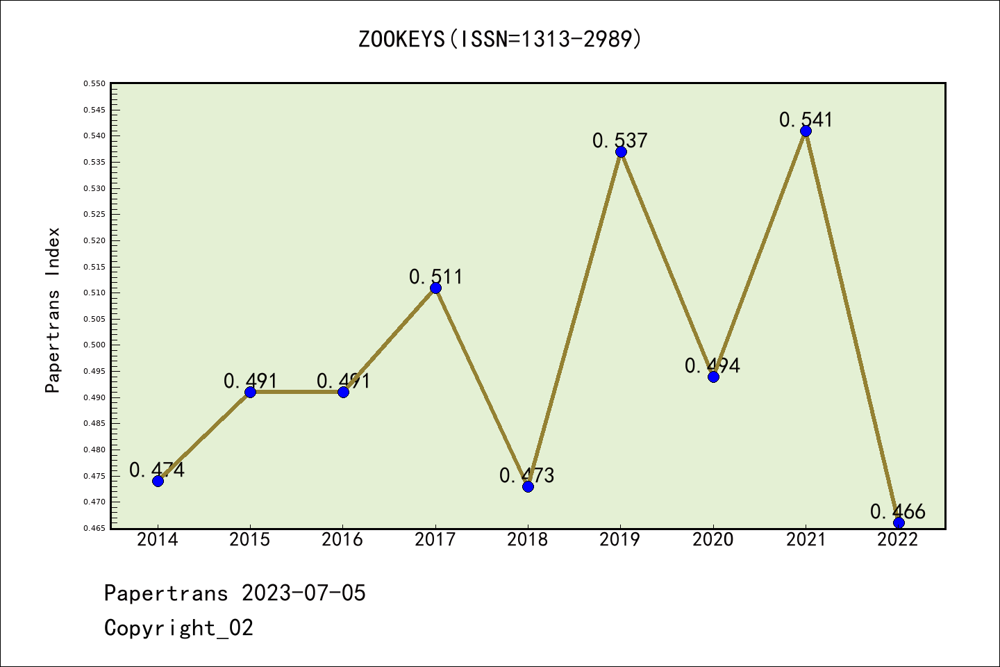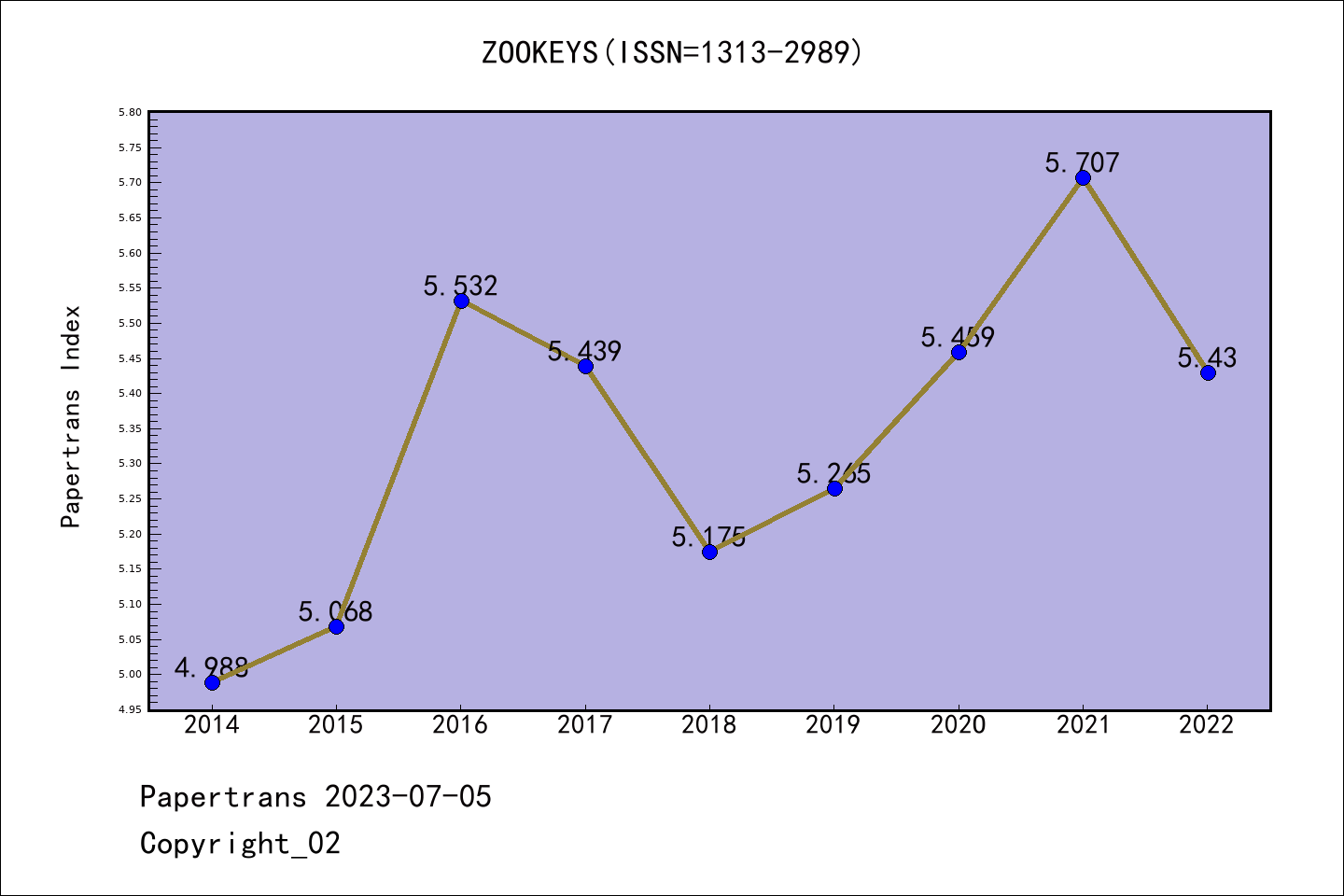 SCIE期刊ZooKeys历年派博系数(Pindex)