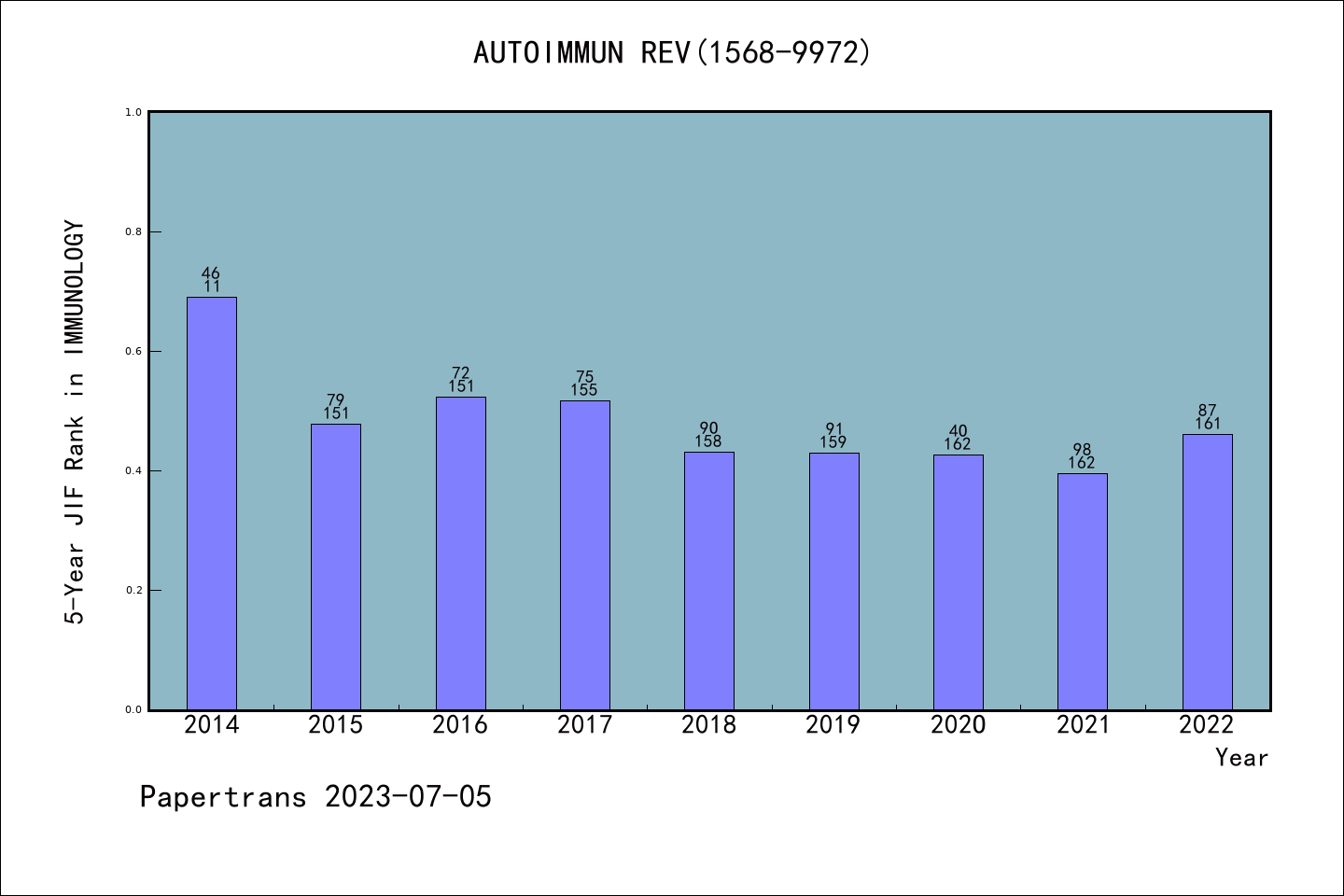 AUTOIMMUN REV图表质量排名@SCIE免疫学