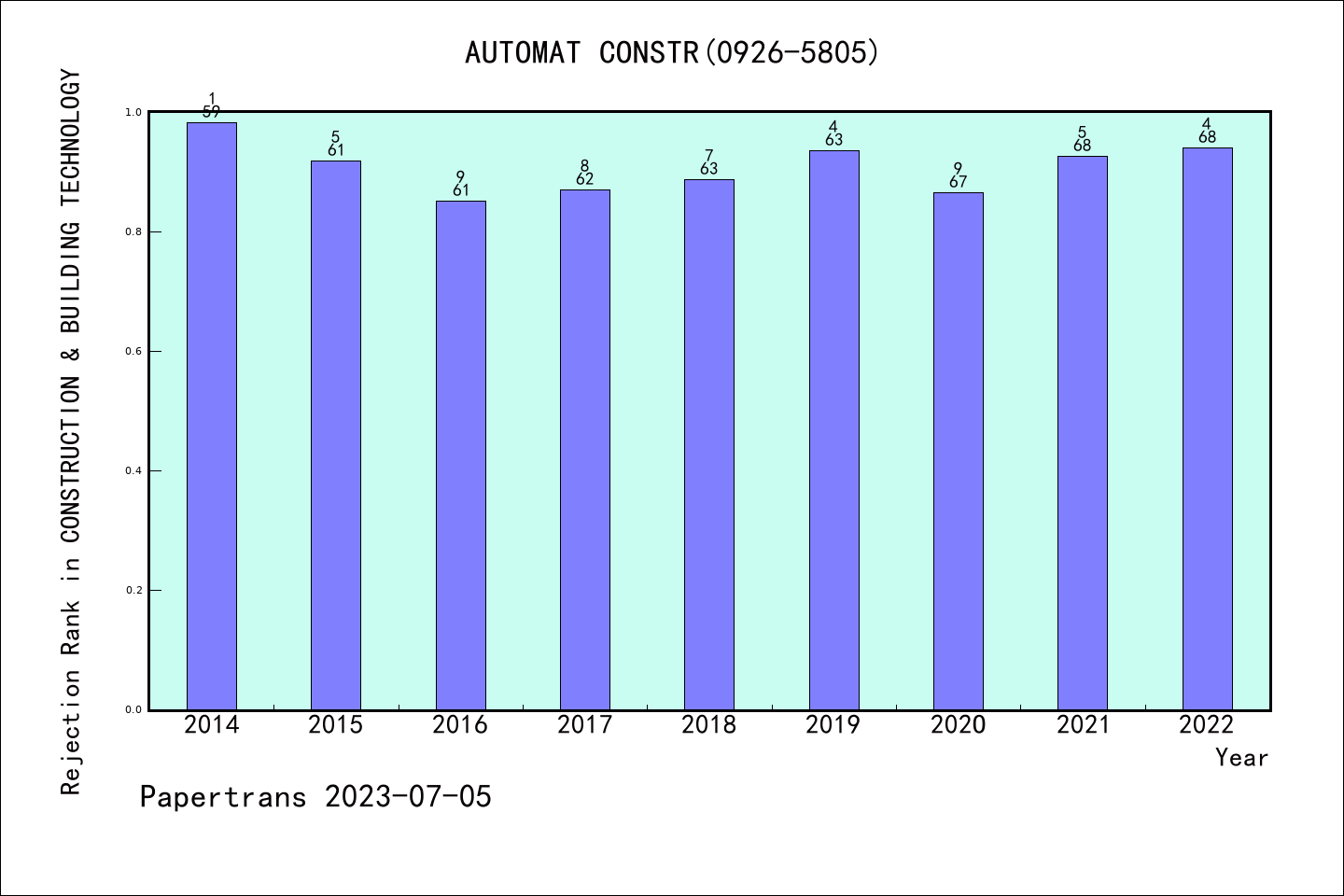 AUTOMATION IN CONSTRUCTION拒稿率学科排名@SCIE建筑施工技术
