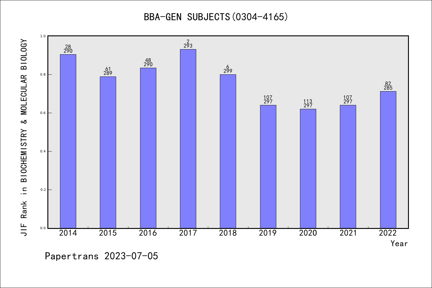BBA-GEN SUBJECTS图表质量排名@SCIE生物化学与分子生物学
