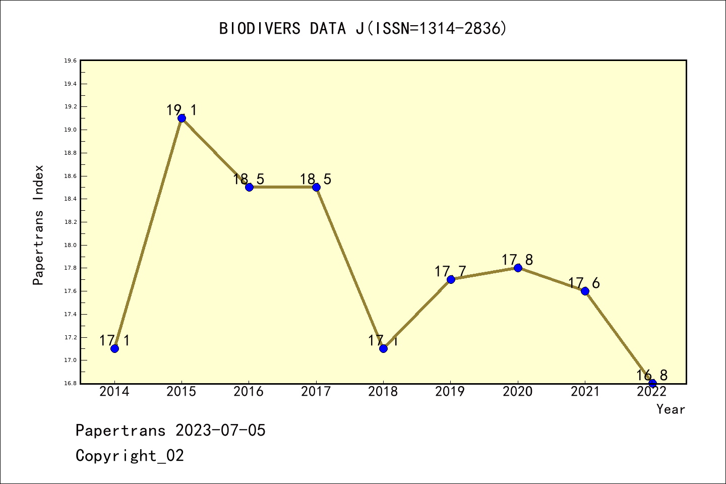 SCIE期刊Biodiversity Data Journal历年派博系数(Pindex)