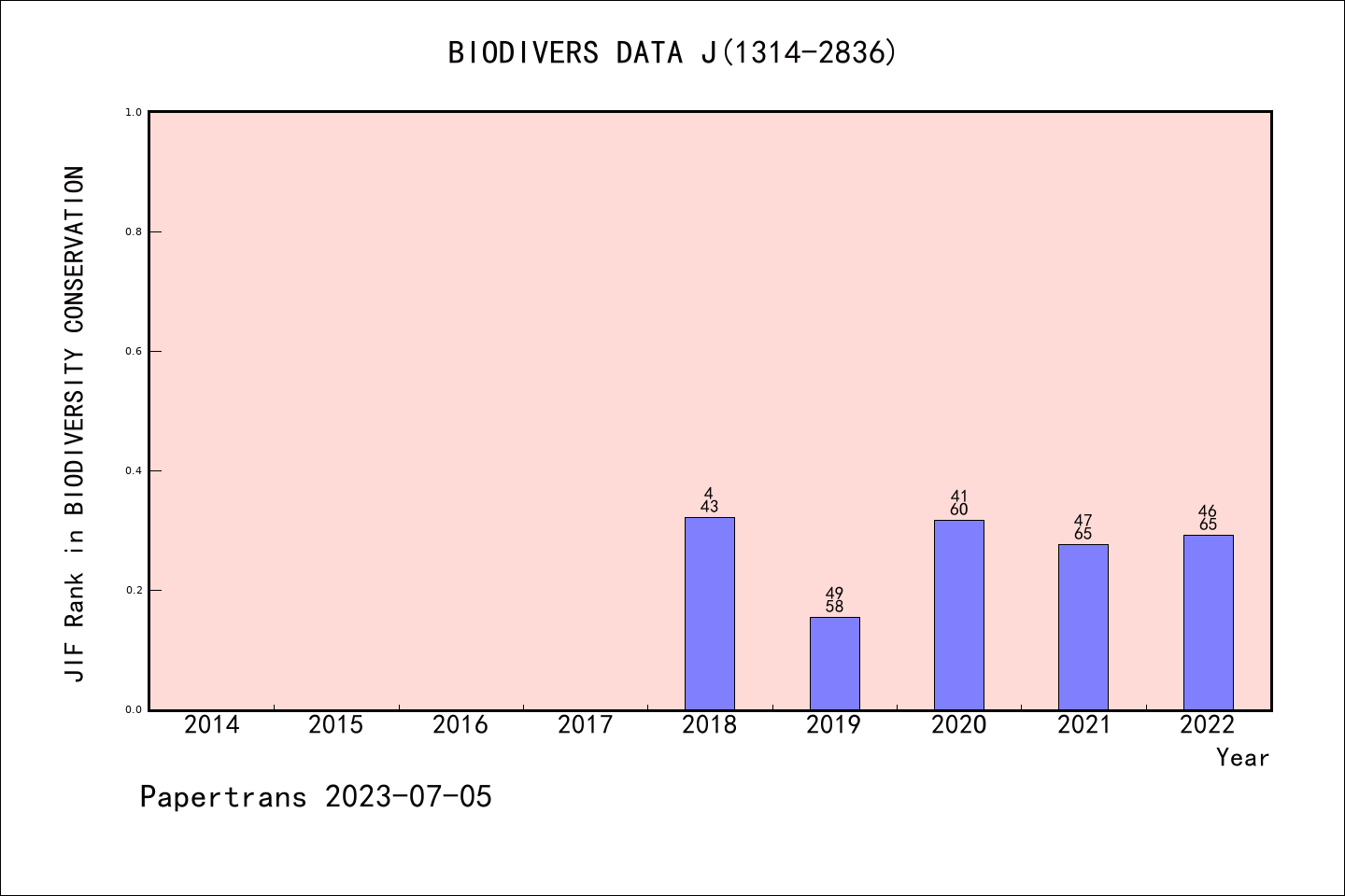 Biodiversity Data Journal拒稿率学科排名@SCIE生物多样性保护
