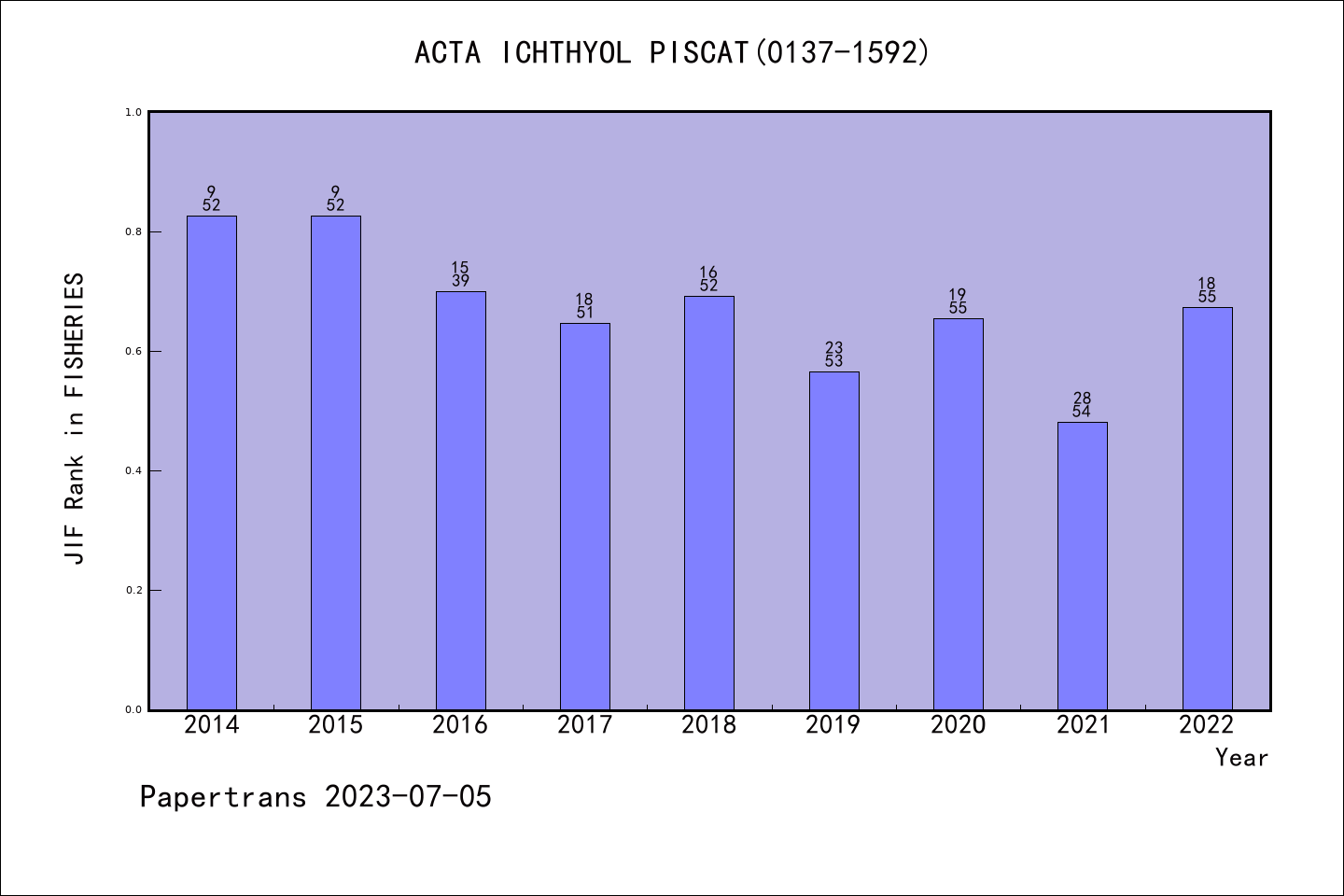 ACTA ICHTHYOL PISCAT图表质量排名@SCIE渔业