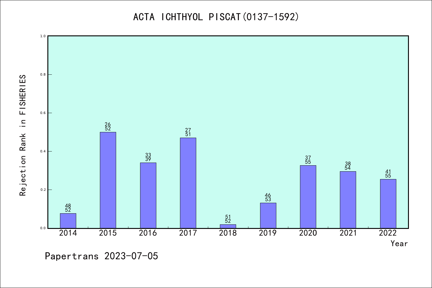SCIE期刊ACTA ICHTHYOLOGICA ET PISCATORIA历年拒稿占比