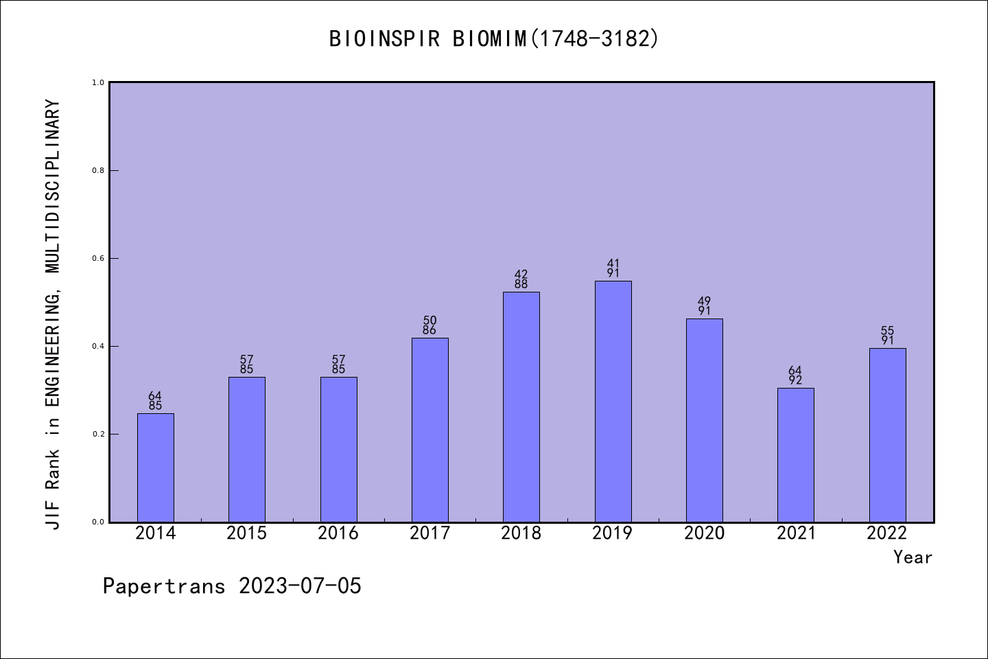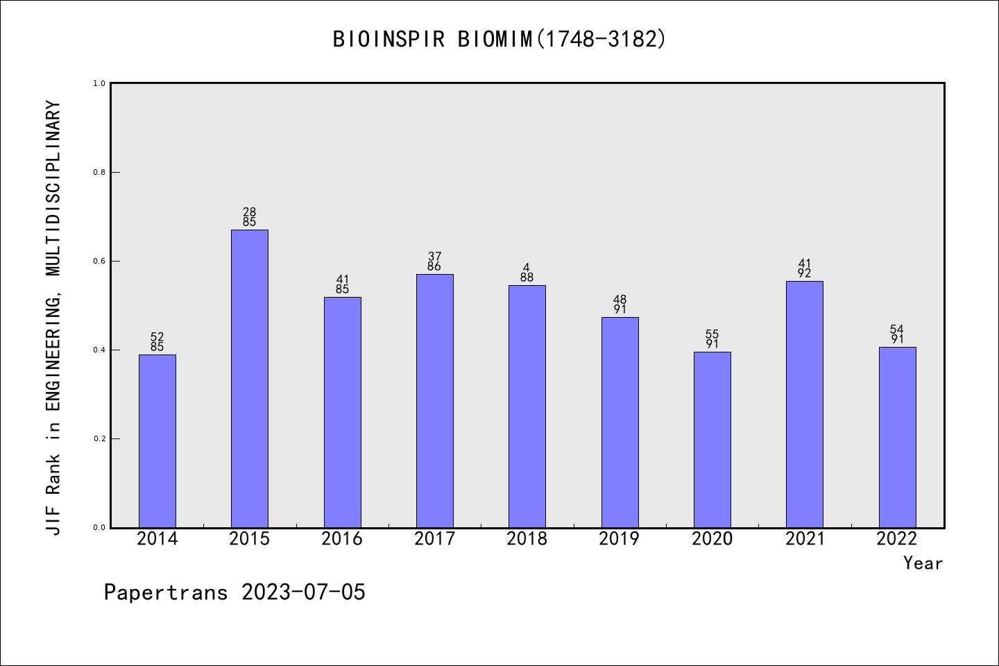 BIOINSPIR BIOMIM图表质量排名@SCIE工程学,多学科