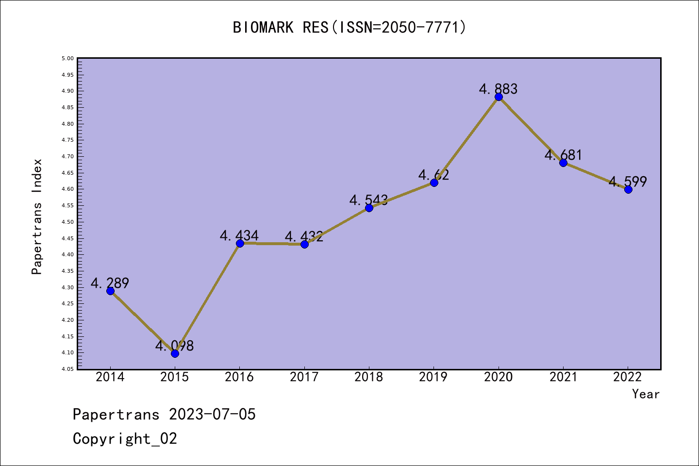 SCIE期刊Biomarker Research历年派博系数(Pindex)