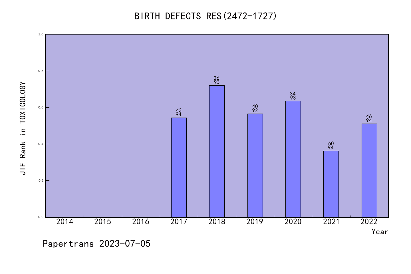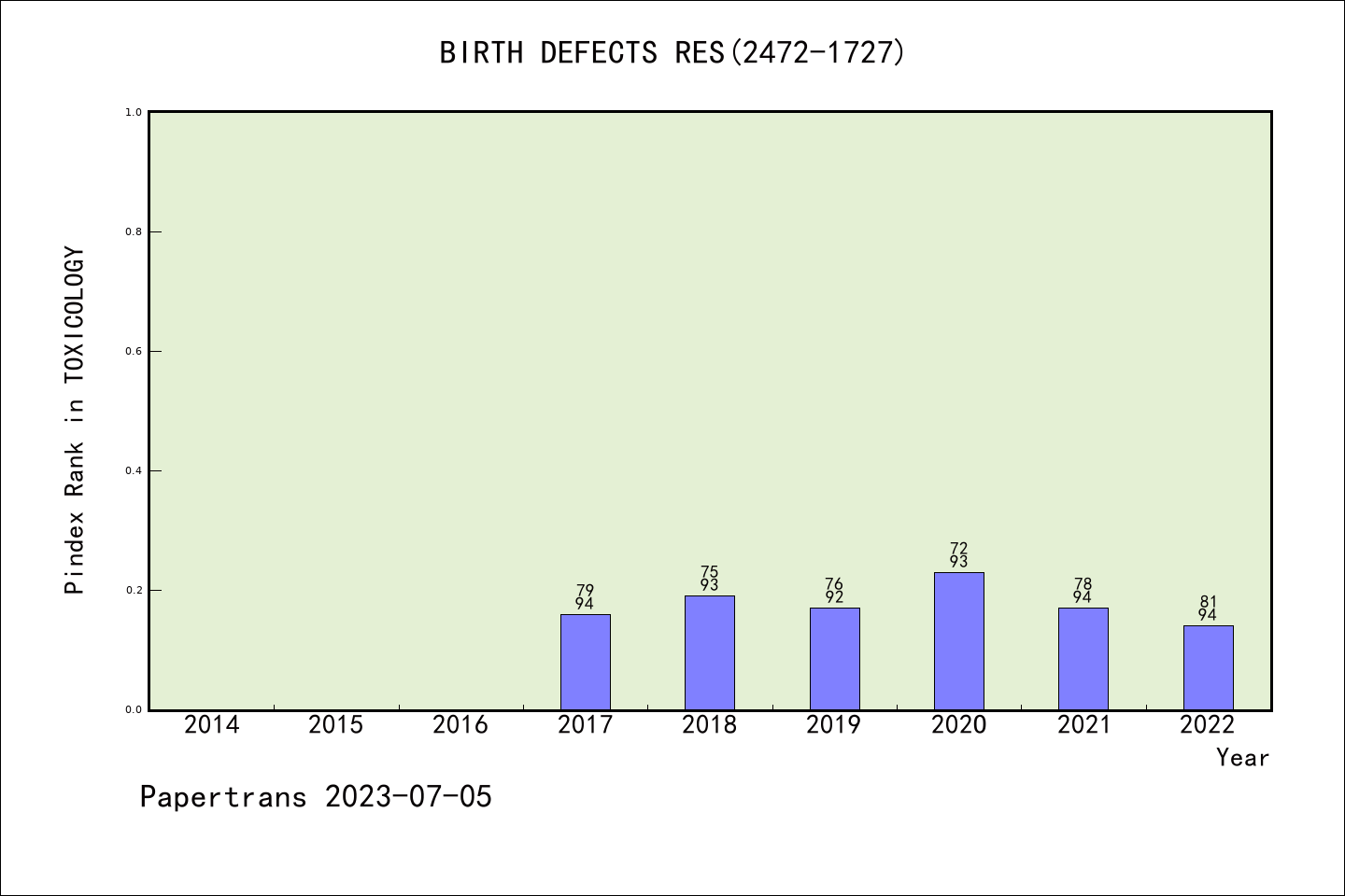 BIRTH DEFECTS RES图表质量排名@SCIE毒理学