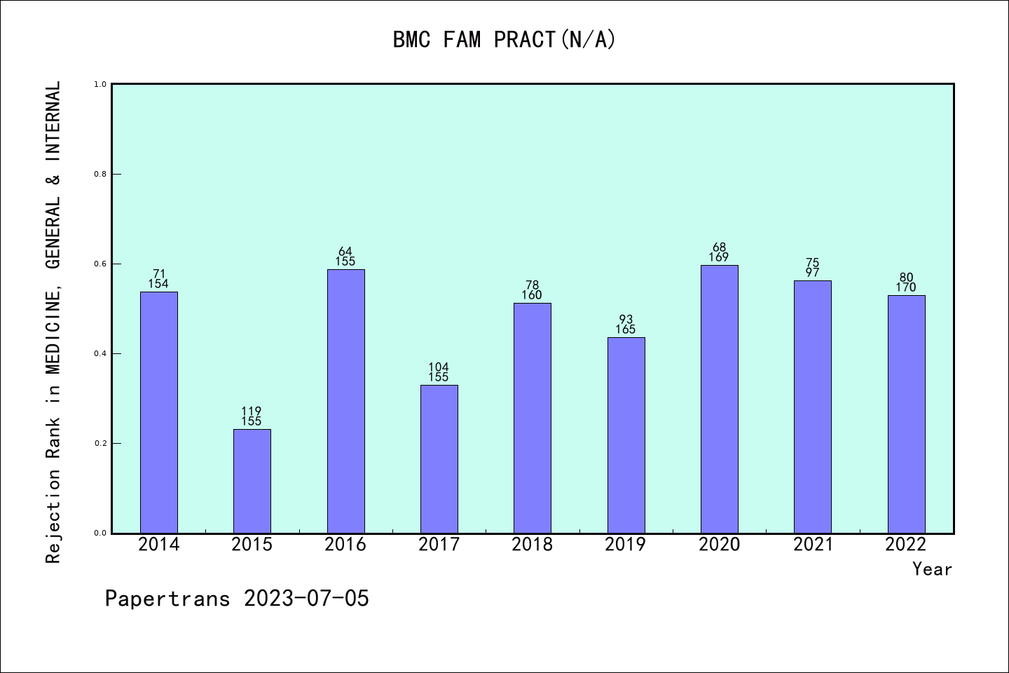 SCIE期刊BMC Family Practice历年拒稿占比