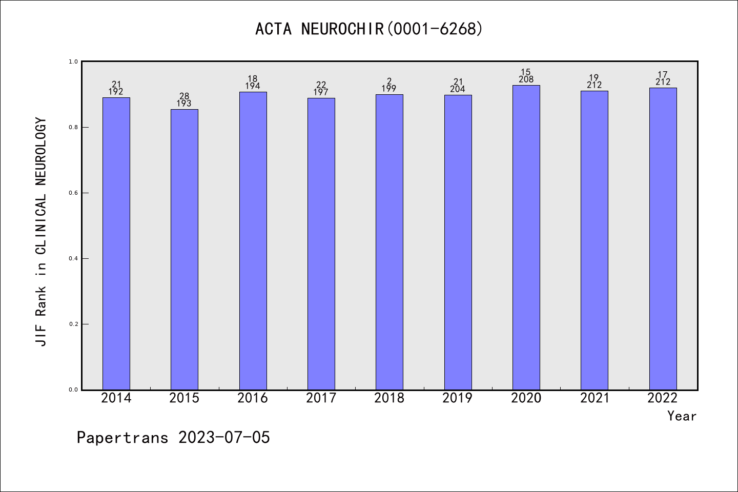 ACTA NEUROCHIR图表质量排名@SCIE临床神经病学