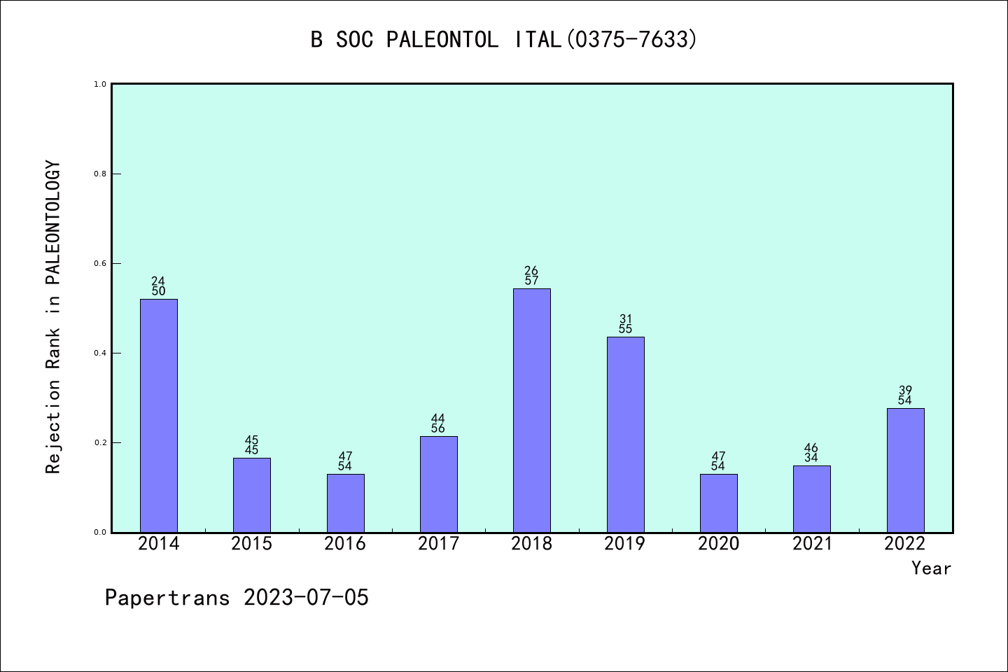BOLLETTINO DELLA SOCIETA PALEONTOLOGICA ITALIANA拒稿率学科排名@SCIE古生物学
