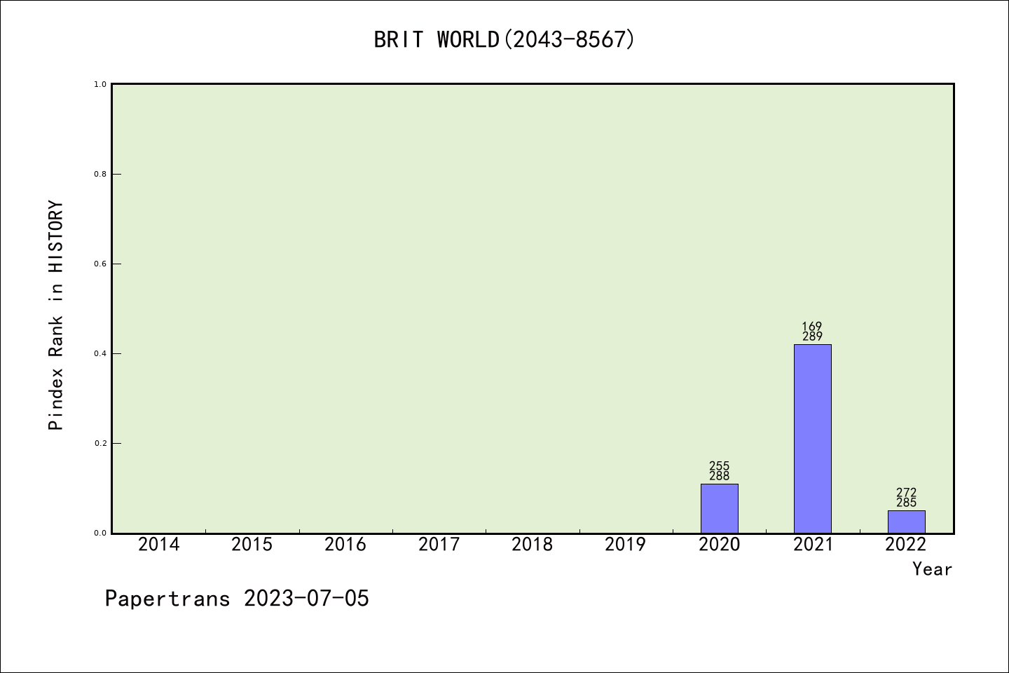 AHCI期刊Britain and the World历年派博系数(Pindex)