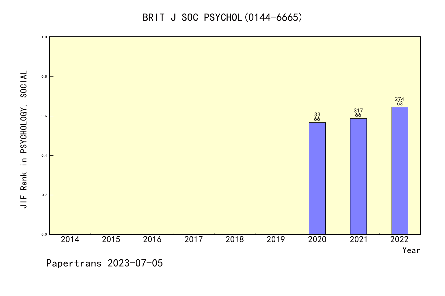 SSCI期刊BRITISH JOURNAL OF SOCIAL PSYCHOLOGY历年派博系数(Pindex)