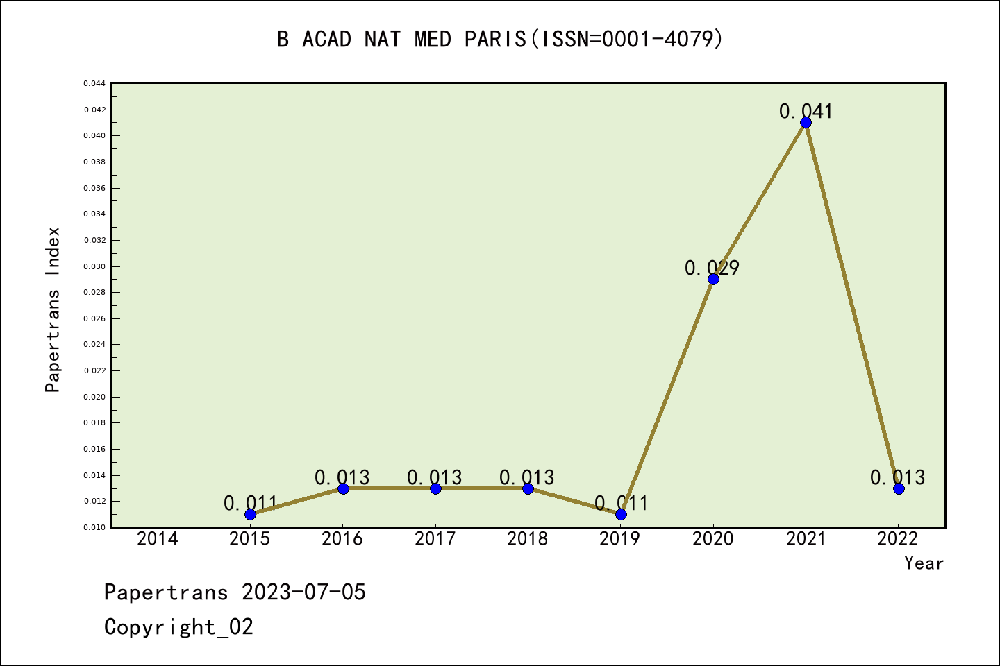 SCIE期刊BULLETIN DE L ACADEMIE NATIONALE DE MEDECINE历年派博系数(Pindex)