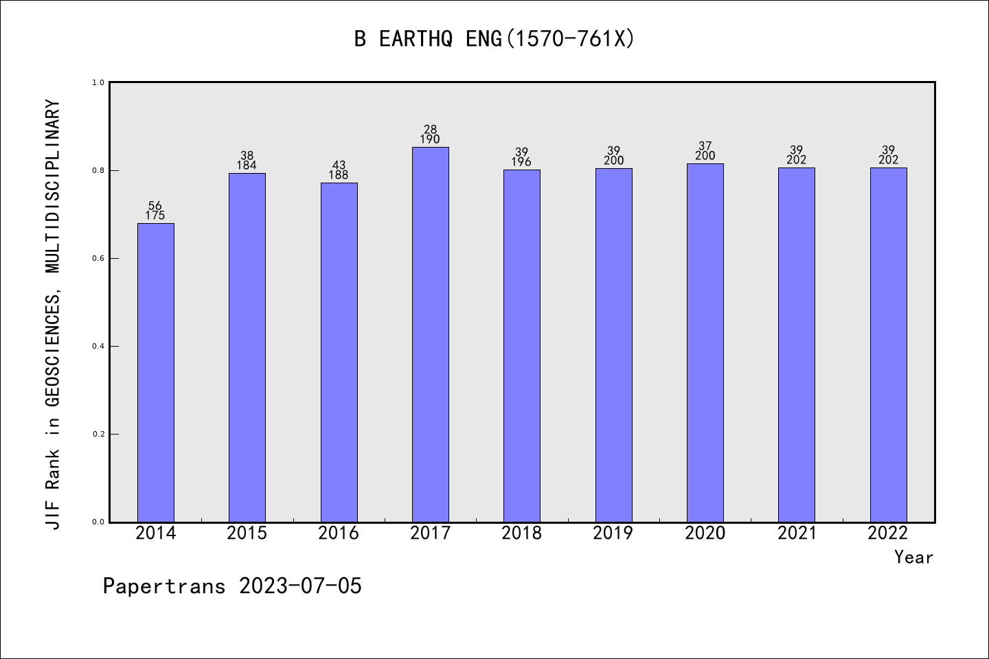 Bulletin of Earthquake Engineering拒稿率学科排名@SCIE地球科学及交叉学科