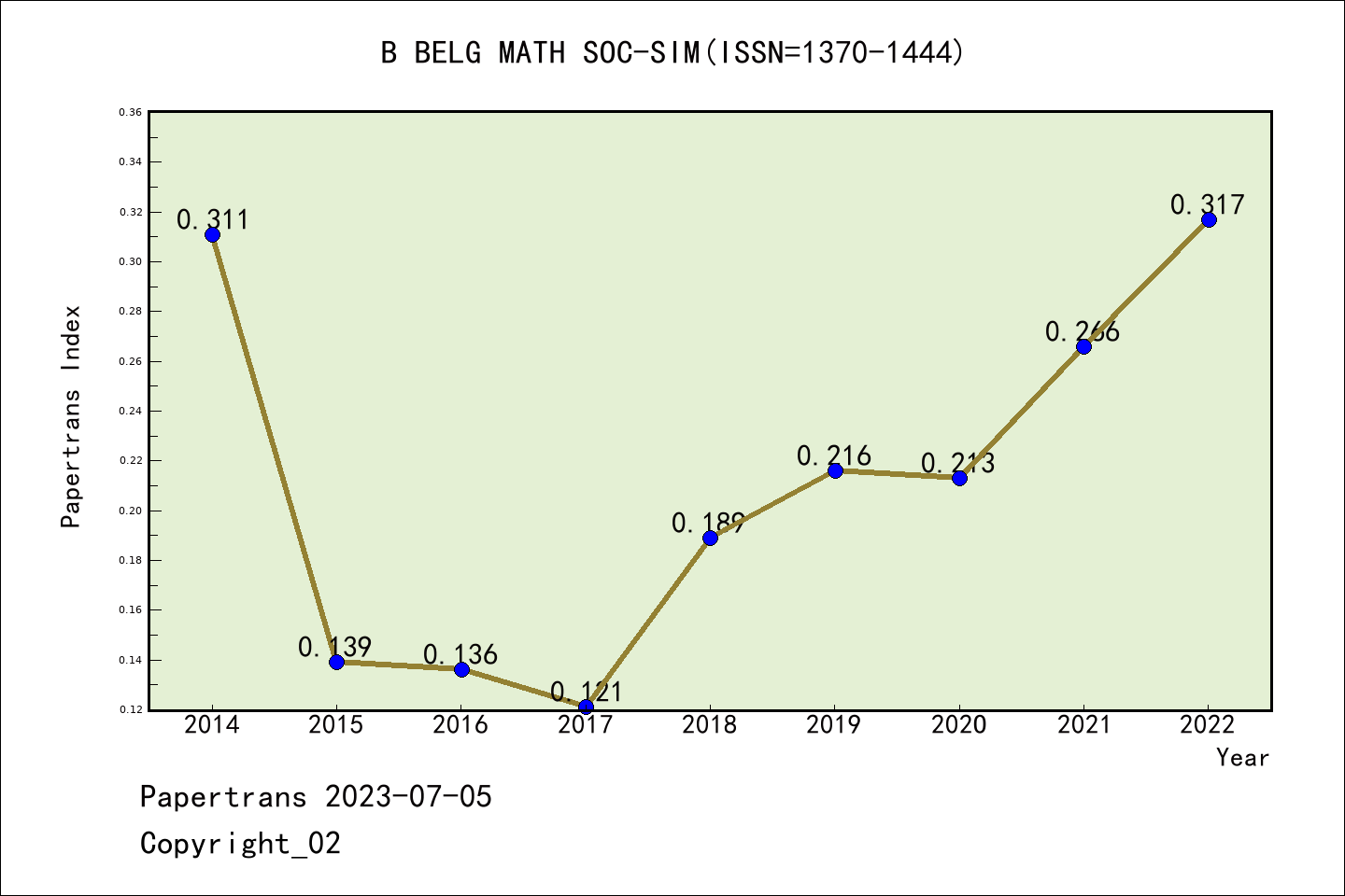 SCIE期刊BULLETIN OF THE BELGIAN MATHEMATICAL SOCIETY-SIMON STEVIN历年派博系数(Pindex)