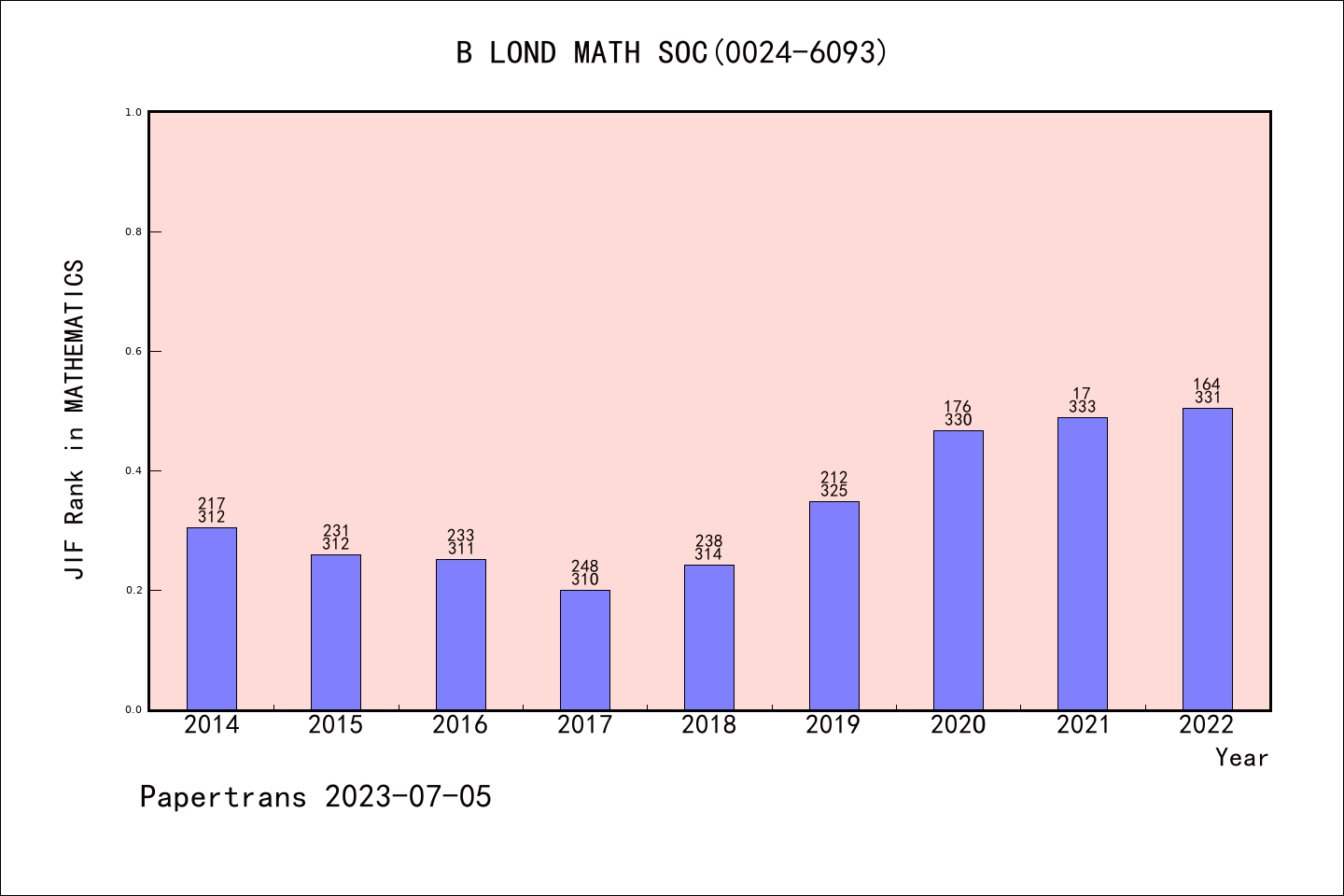 BULLETIN OF THE LONDON MATHEMATICAL SOCIETY拒稿率学科排名@SCIE数学