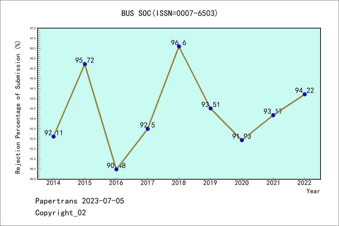 SSCI期刊Business & Society历年拒稿占比