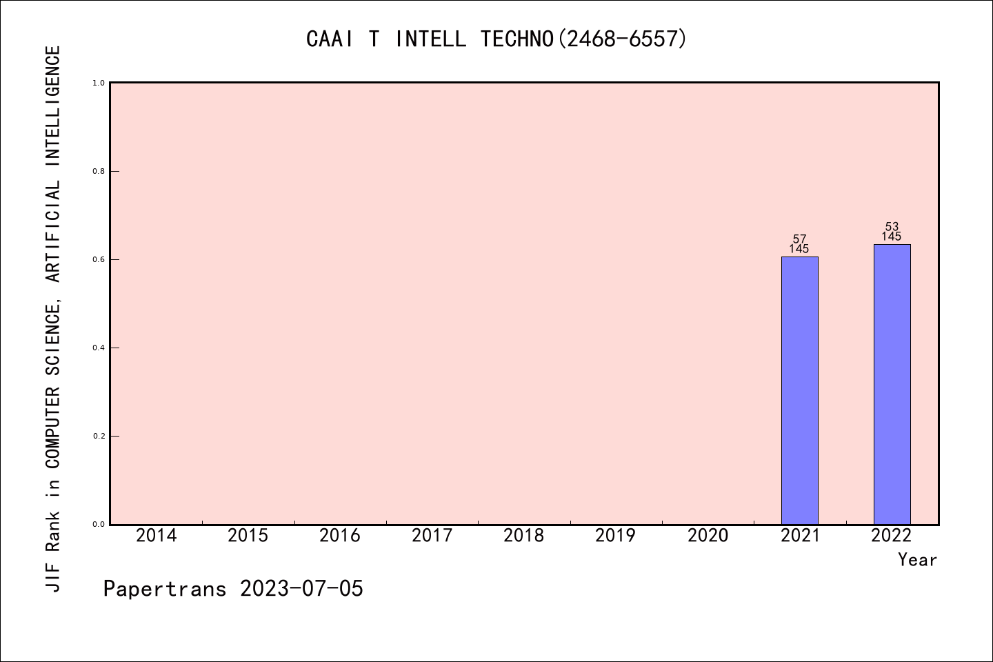SCIE期刊CAAI Transactions on Intelligence Technology历年派博系数(Pindex)