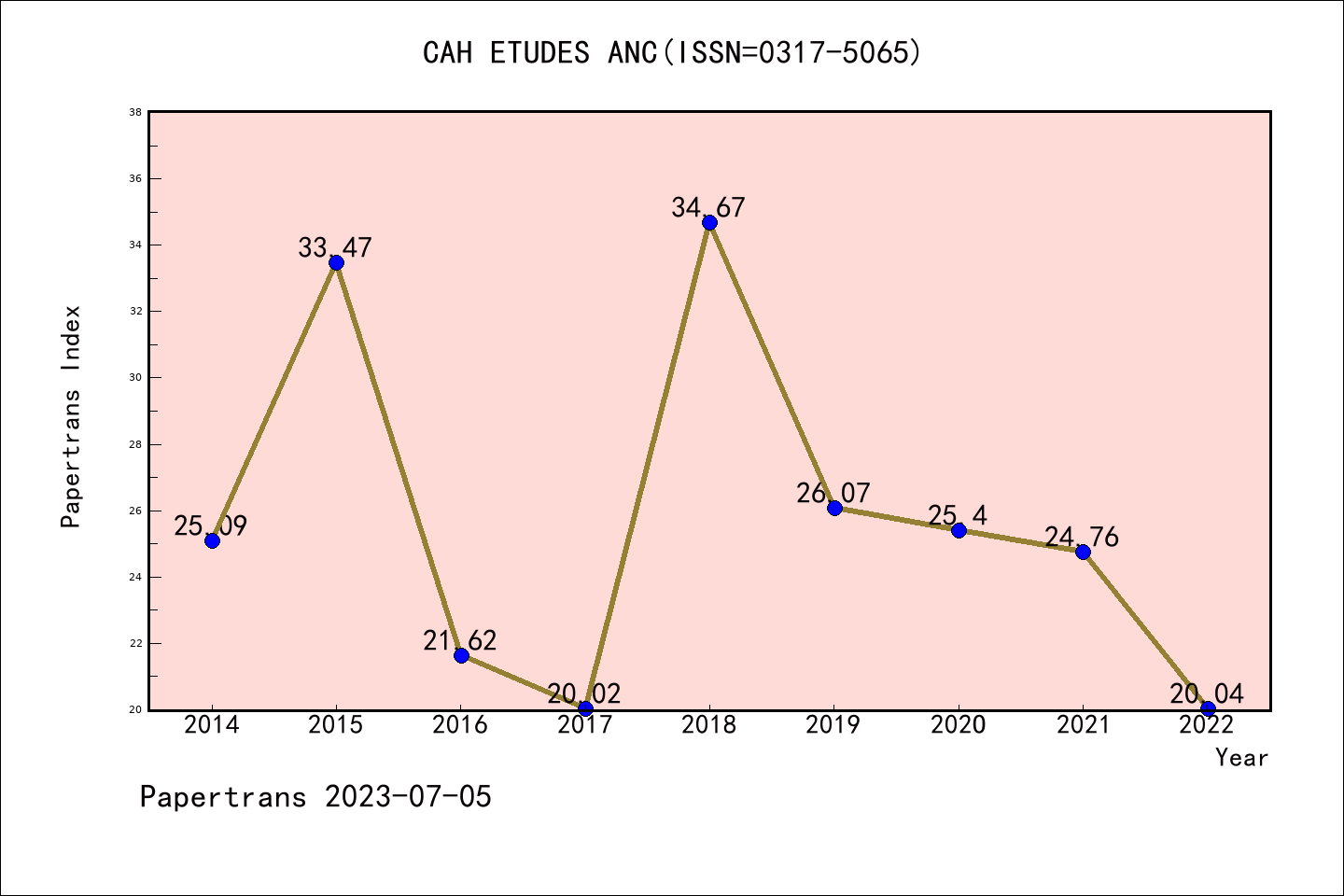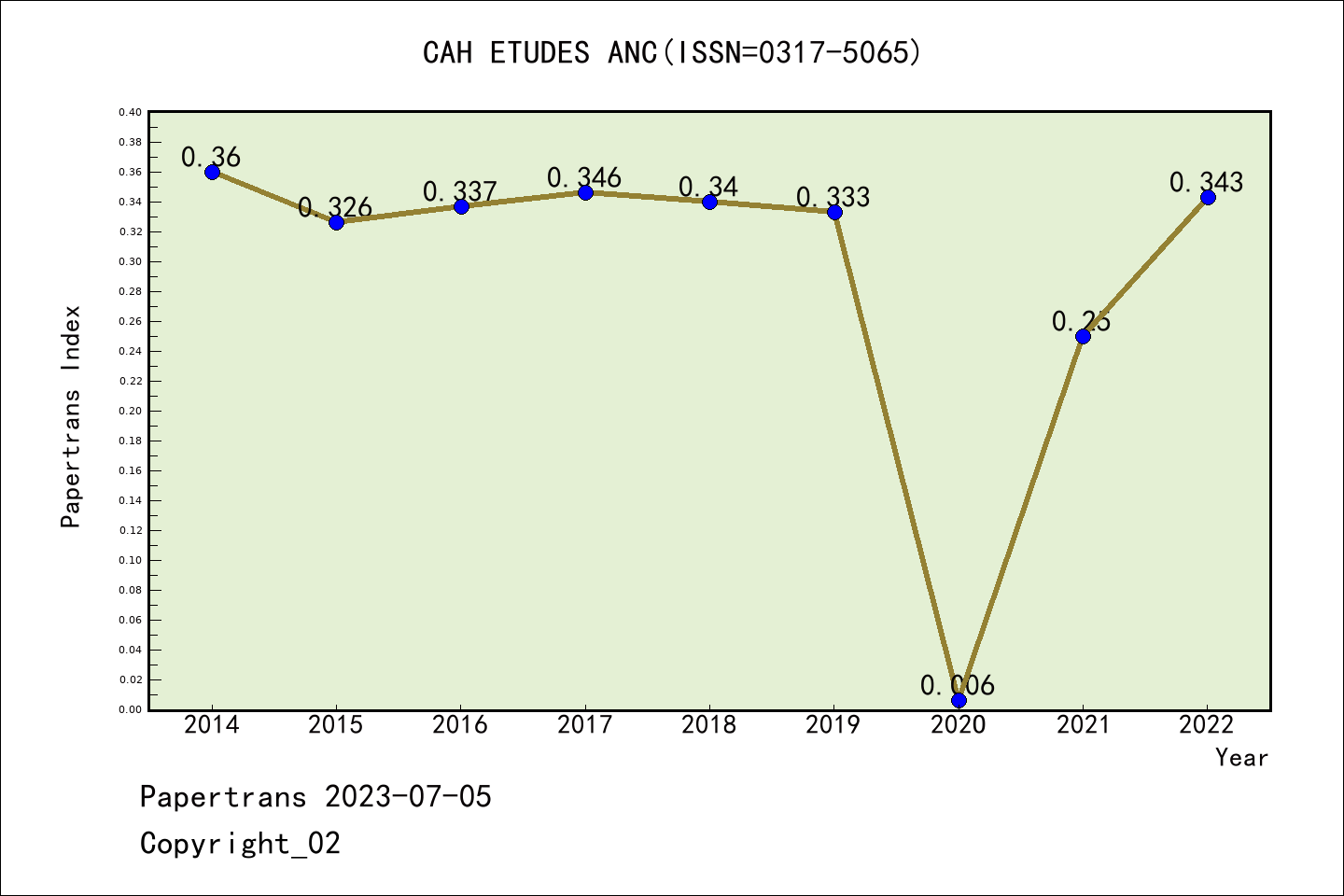 ESCI期刊Cahiers des Etudes Anciennes历年派博系数(Pindex)