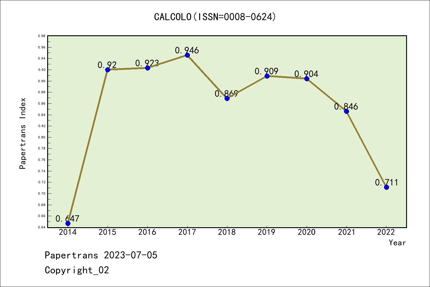 SCIE期刊CALCOLO历年派博系数(Pindex)