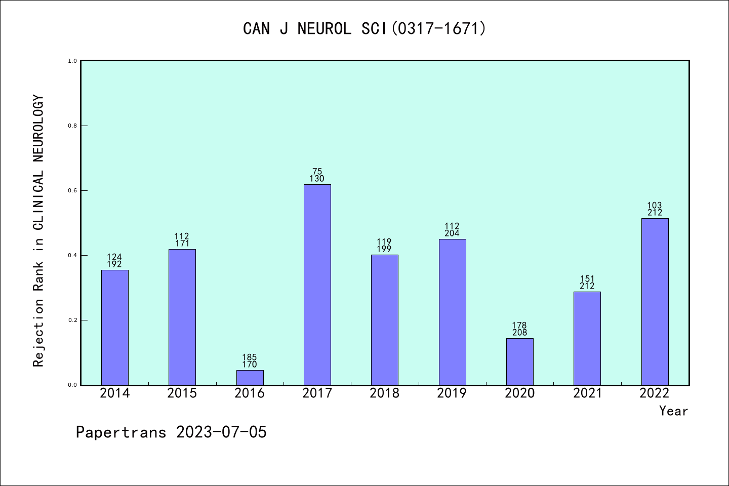 SCIE期刊CANADIAN JOURNAL OF NEUROLOGICAL SCIENCES历年拒稿占比