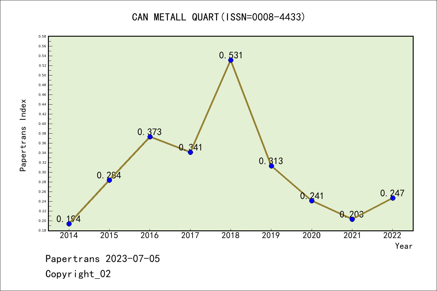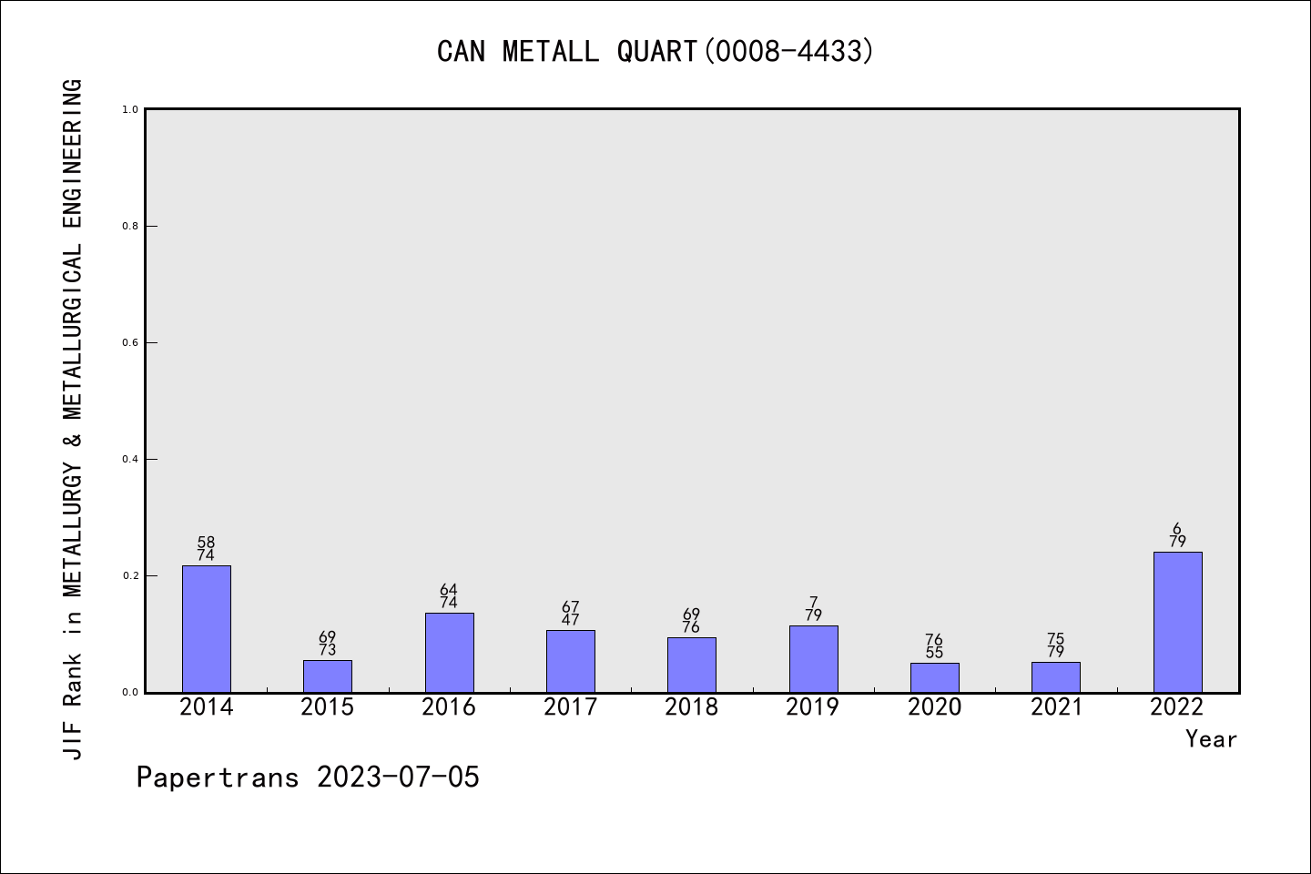 SCIE期刊CANADIAN METALLURGICAL QUARTERLY历年派博系数(Pindex)