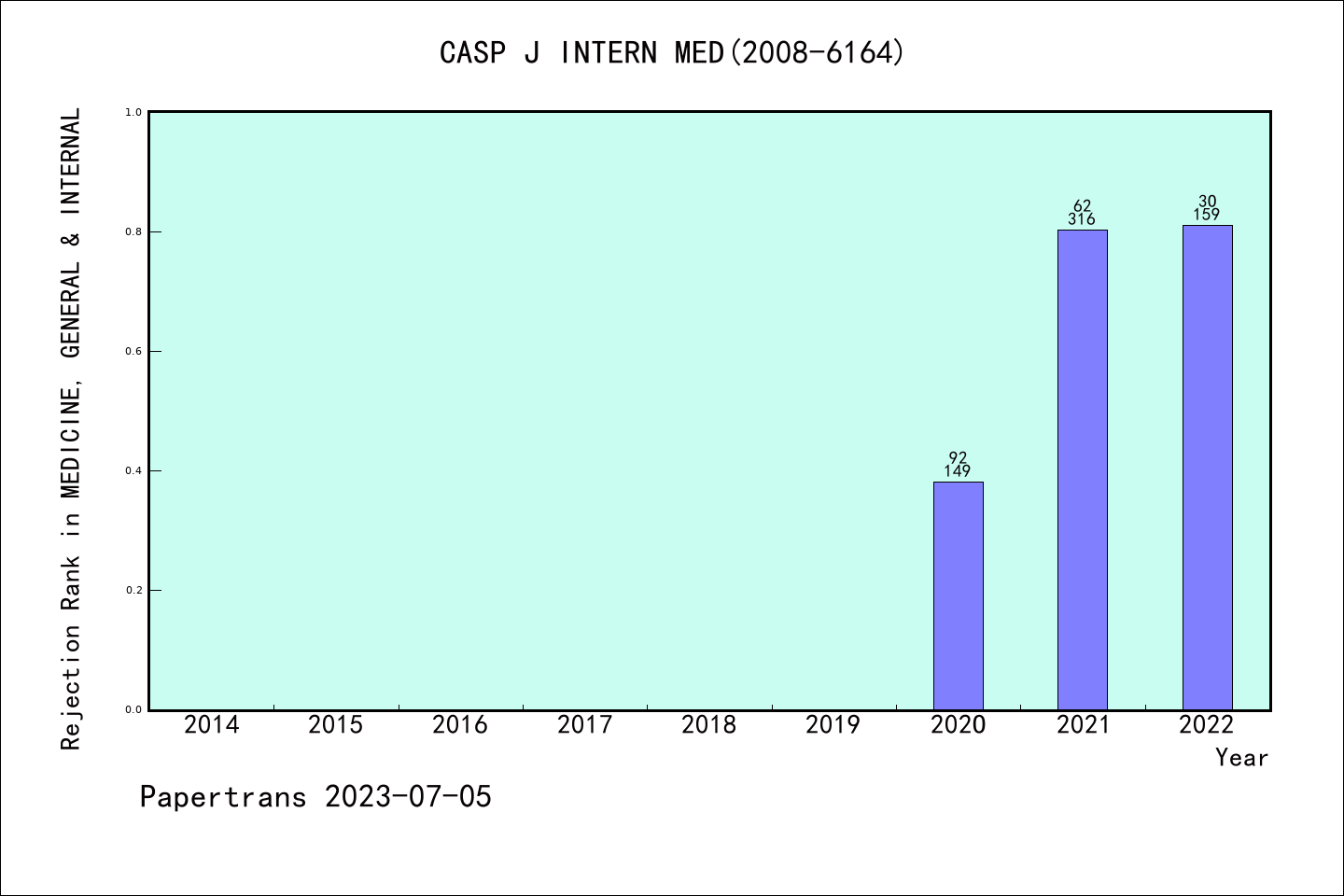 ESCI期刊Caspian Journal of Internal Medicine历年拒稿占比