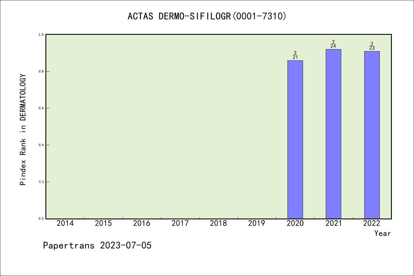 Actas Dermo-Sifiliograficas派博系数(Pindex)学科排名@ESCI皮肤科