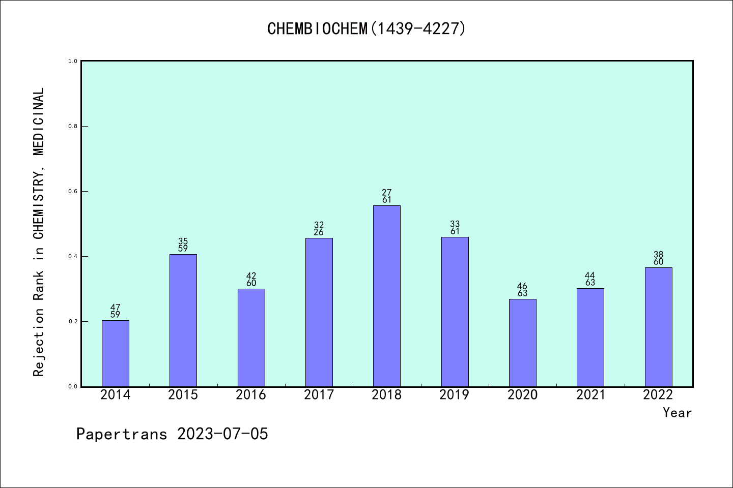 SCIE期刊CHEMBIOCHEM历年拒稿占比