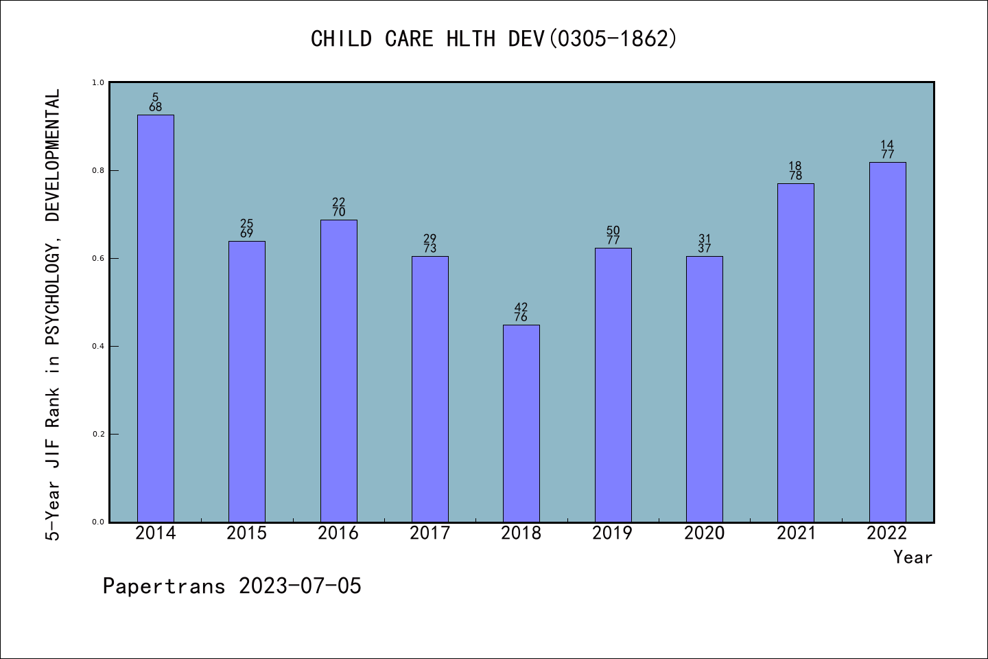 CHILD CARE HEALTH AND DEVELOPMENT拒稿率学科排名@SSCI发展心理学