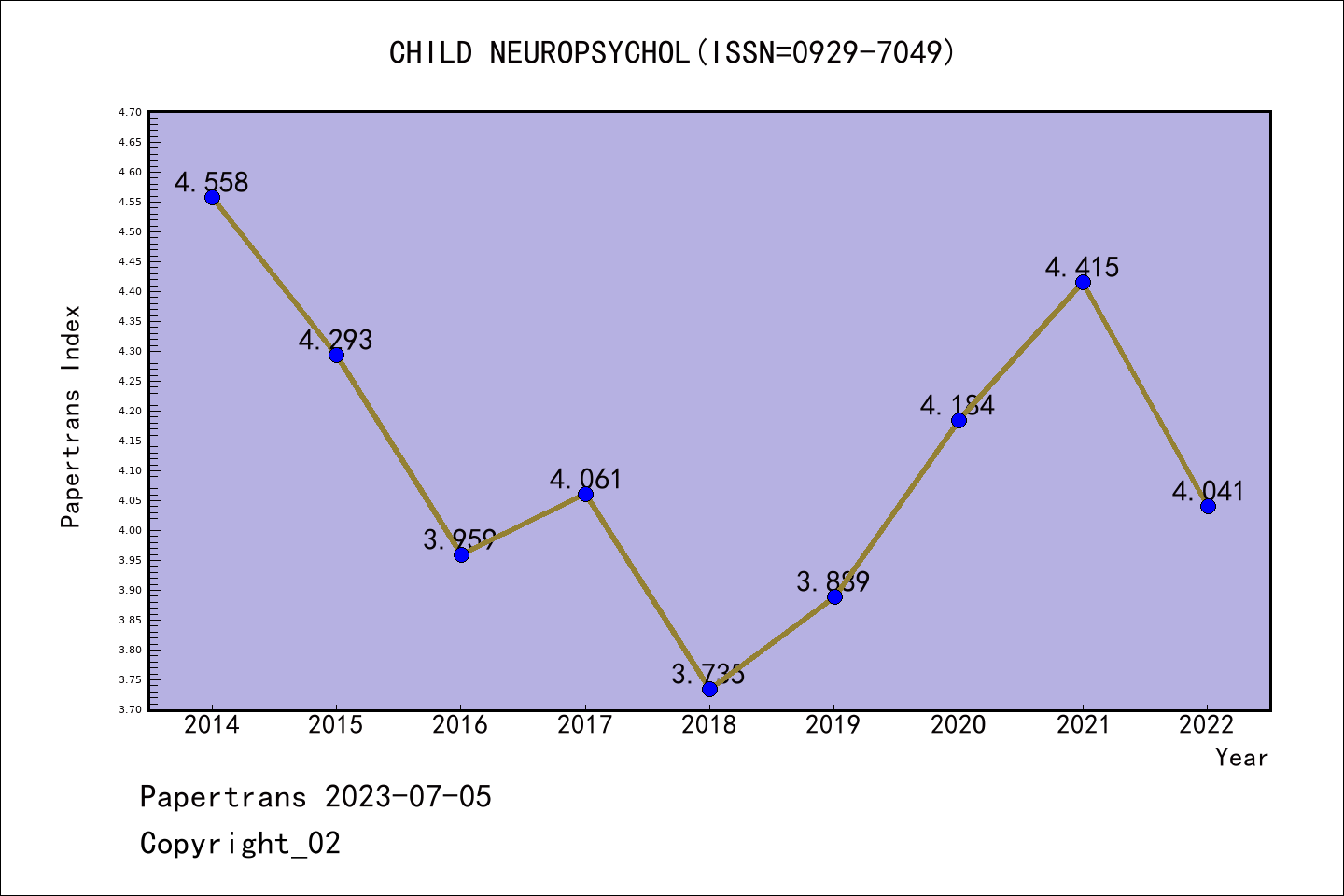 SCIE期刊CHILD NEUROPSYCHOLOGY历年派博系数(Pindex)