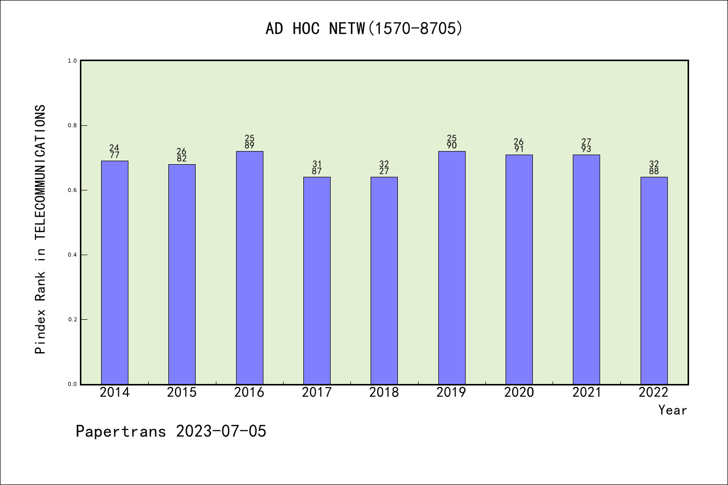 SCIE期刊Ad Hoc Networks历年派博系数(Pindex)
