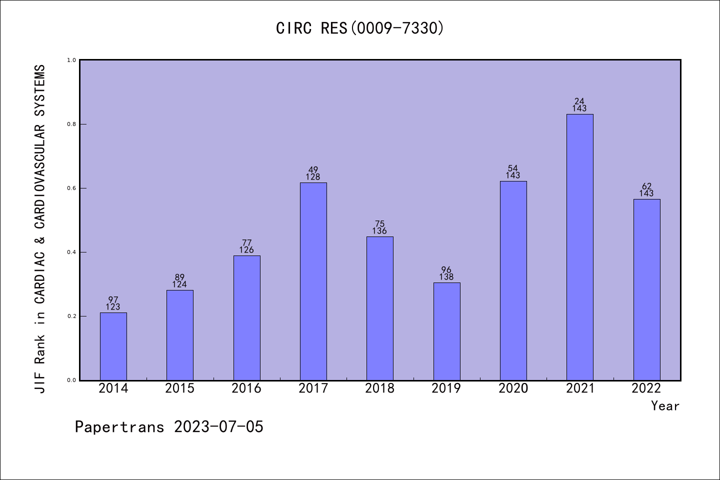 CIRCULATION RESEARCH派博系数(Pindex)学科排名@SCIE心脏和心血管系统