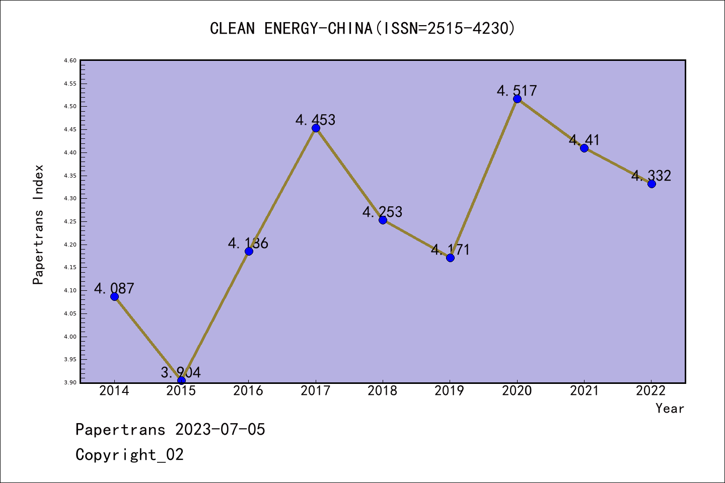 ESCI期刊Clean Energy历年派博系数(Pindex)