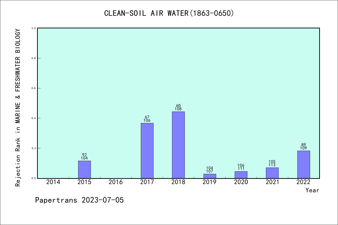CLEAN-Soil Air Water拒稿率学科排名@SCIE海洋与淡水生物学