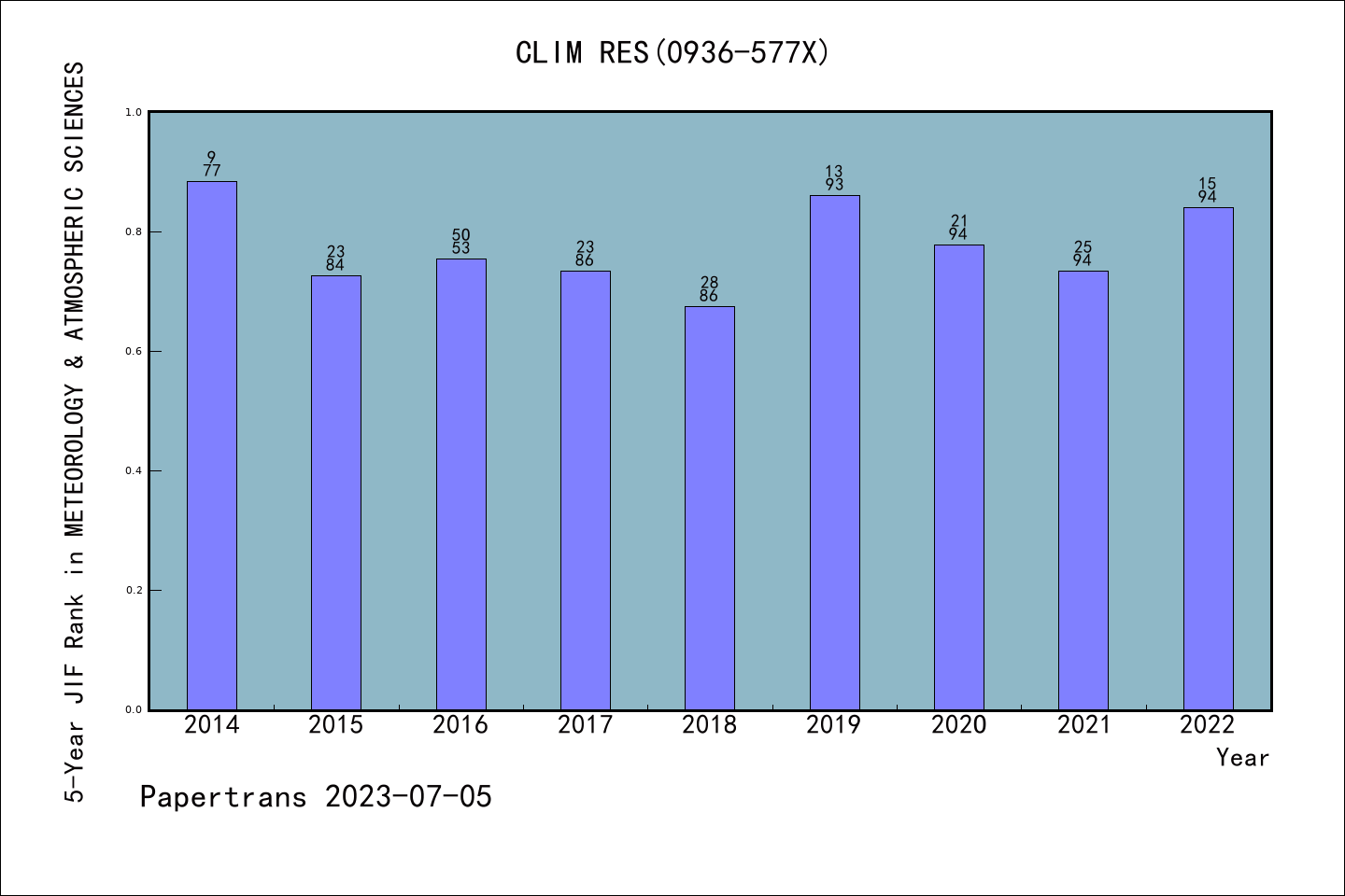 CLIMATE RESEARCH拒稿率学科排名@SCIE气象学与大气科学
